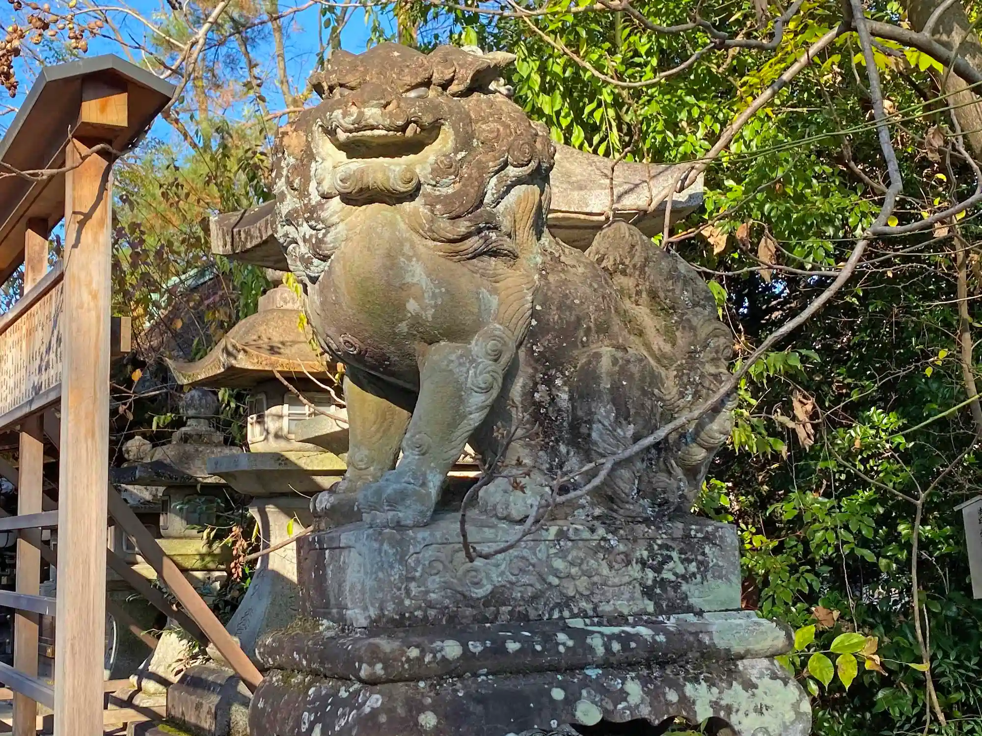 参道左側の<狛犬>。勇ましくも凛々しい出で立ち。