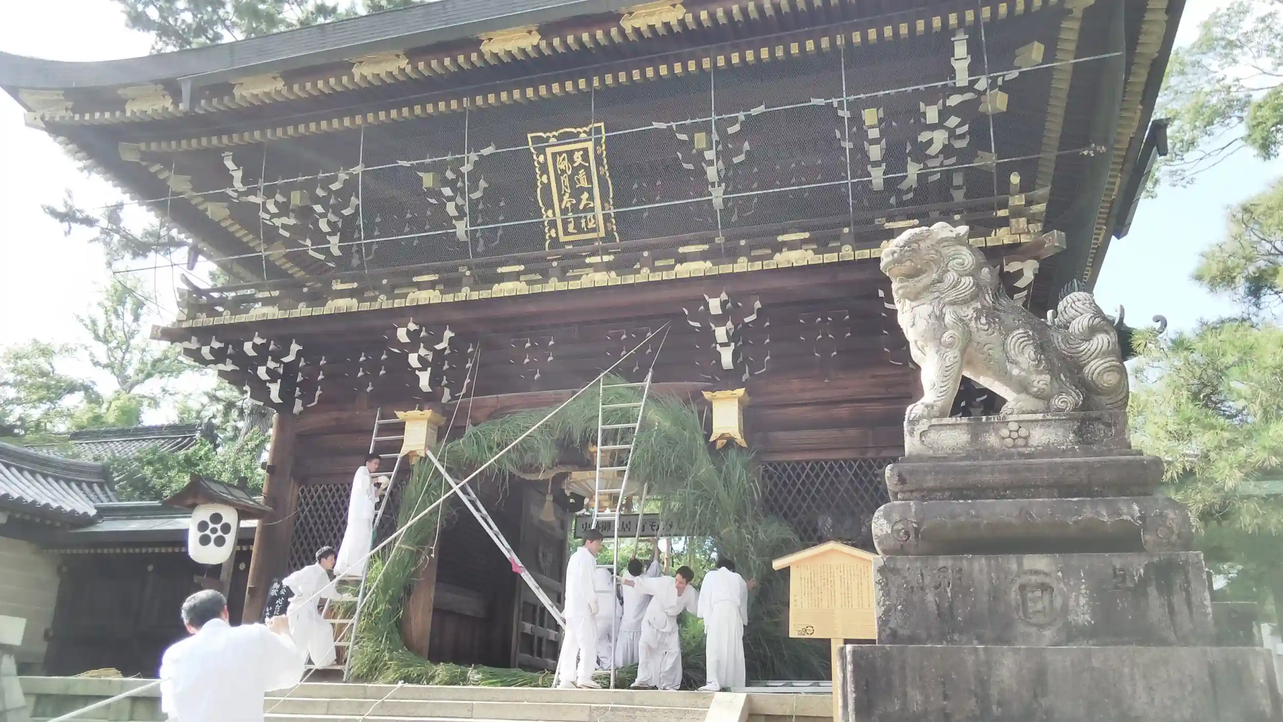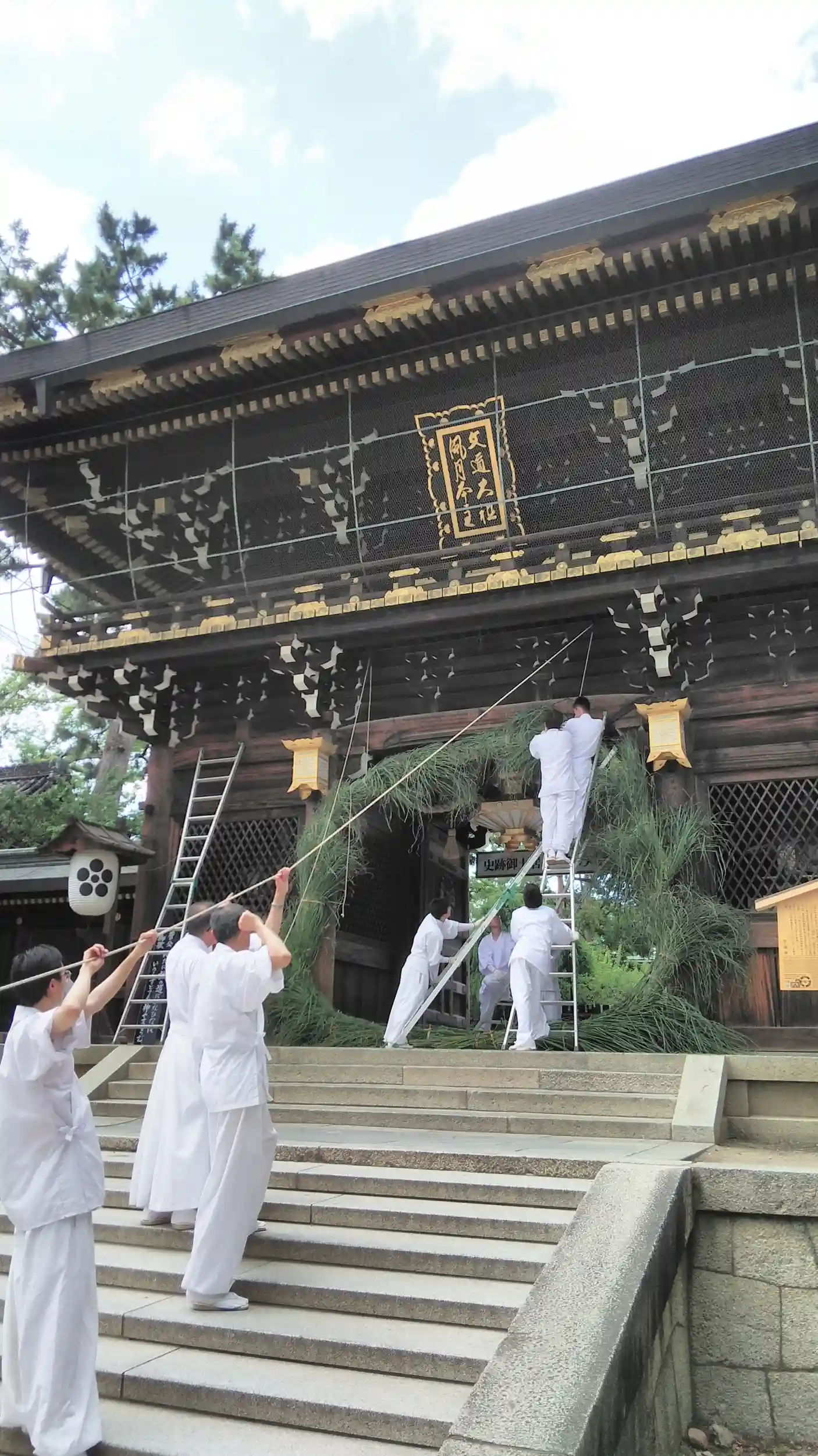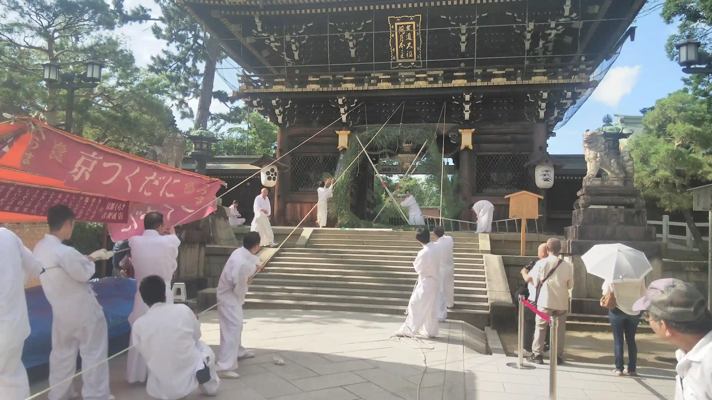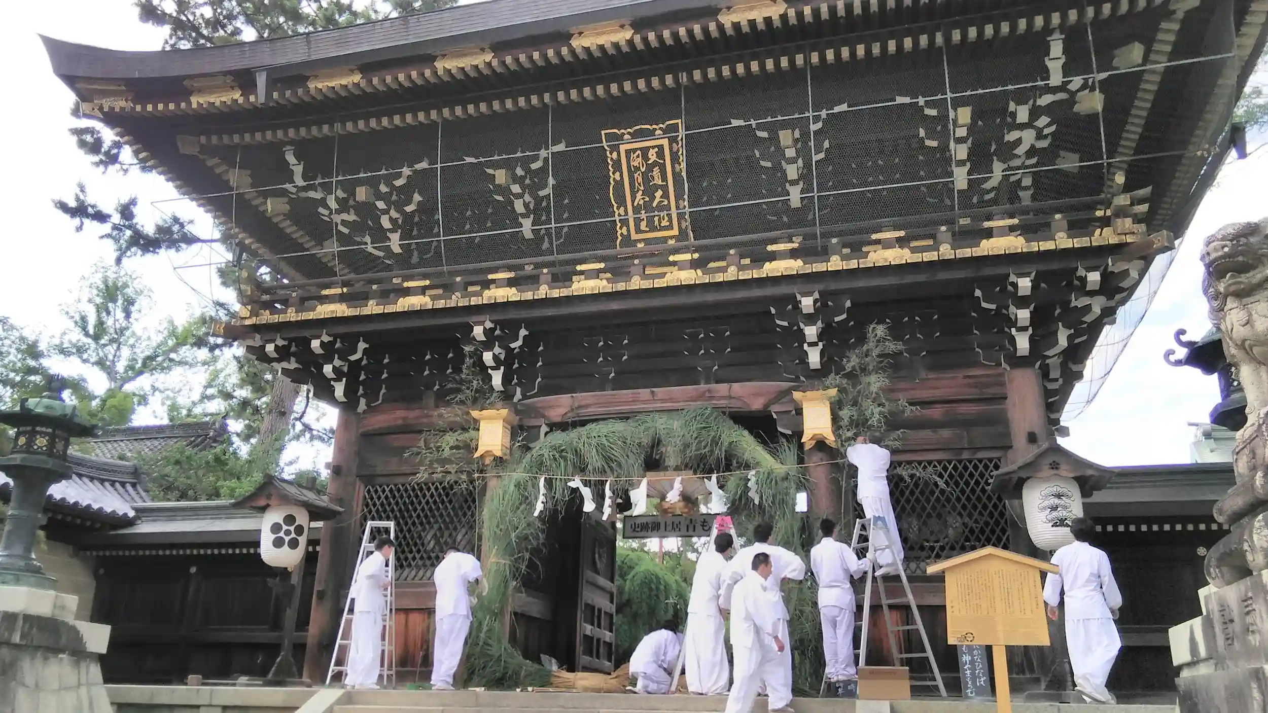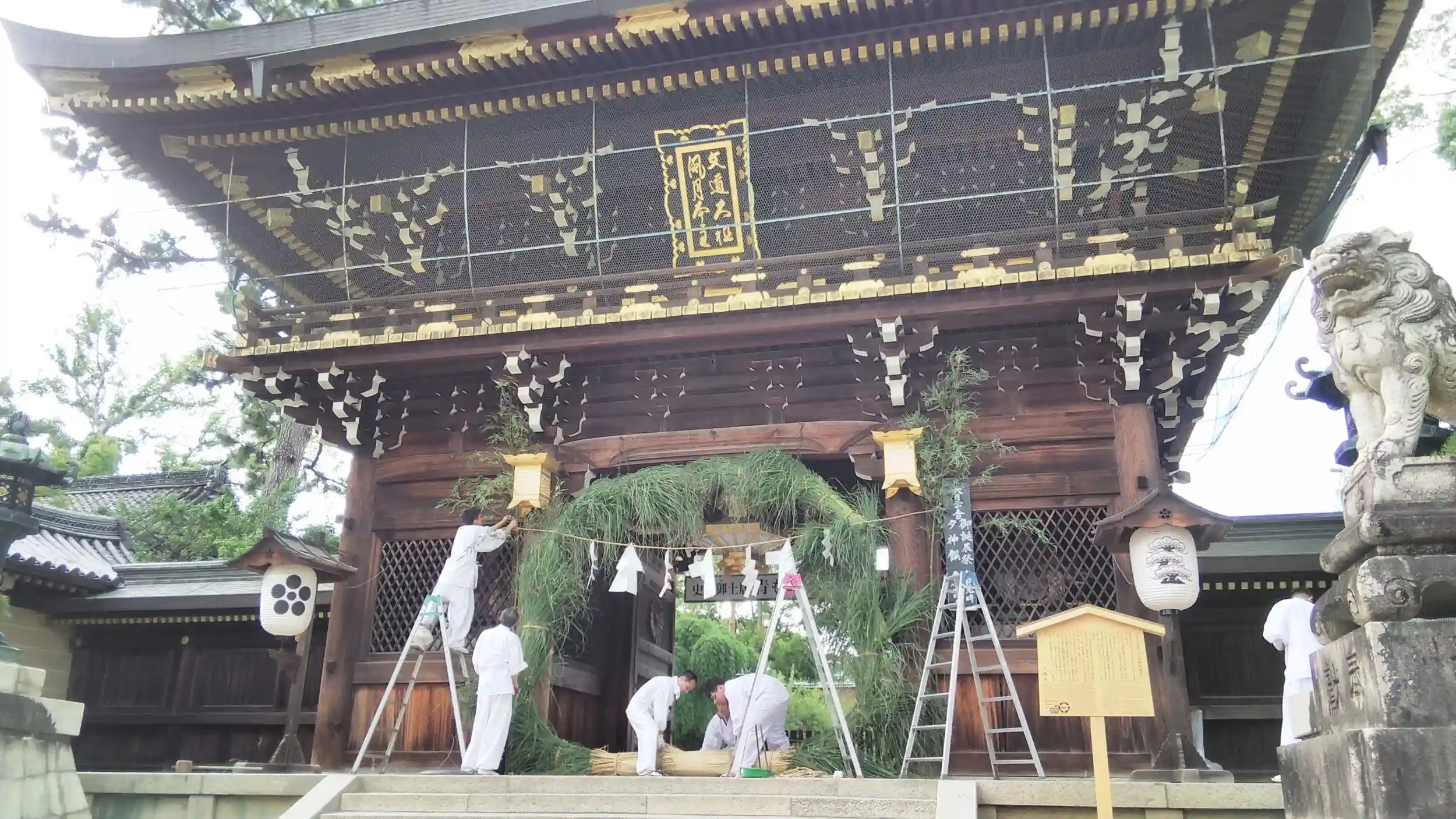 北野天満宮、大茅の輪の取り付け作業を見学してきました。
