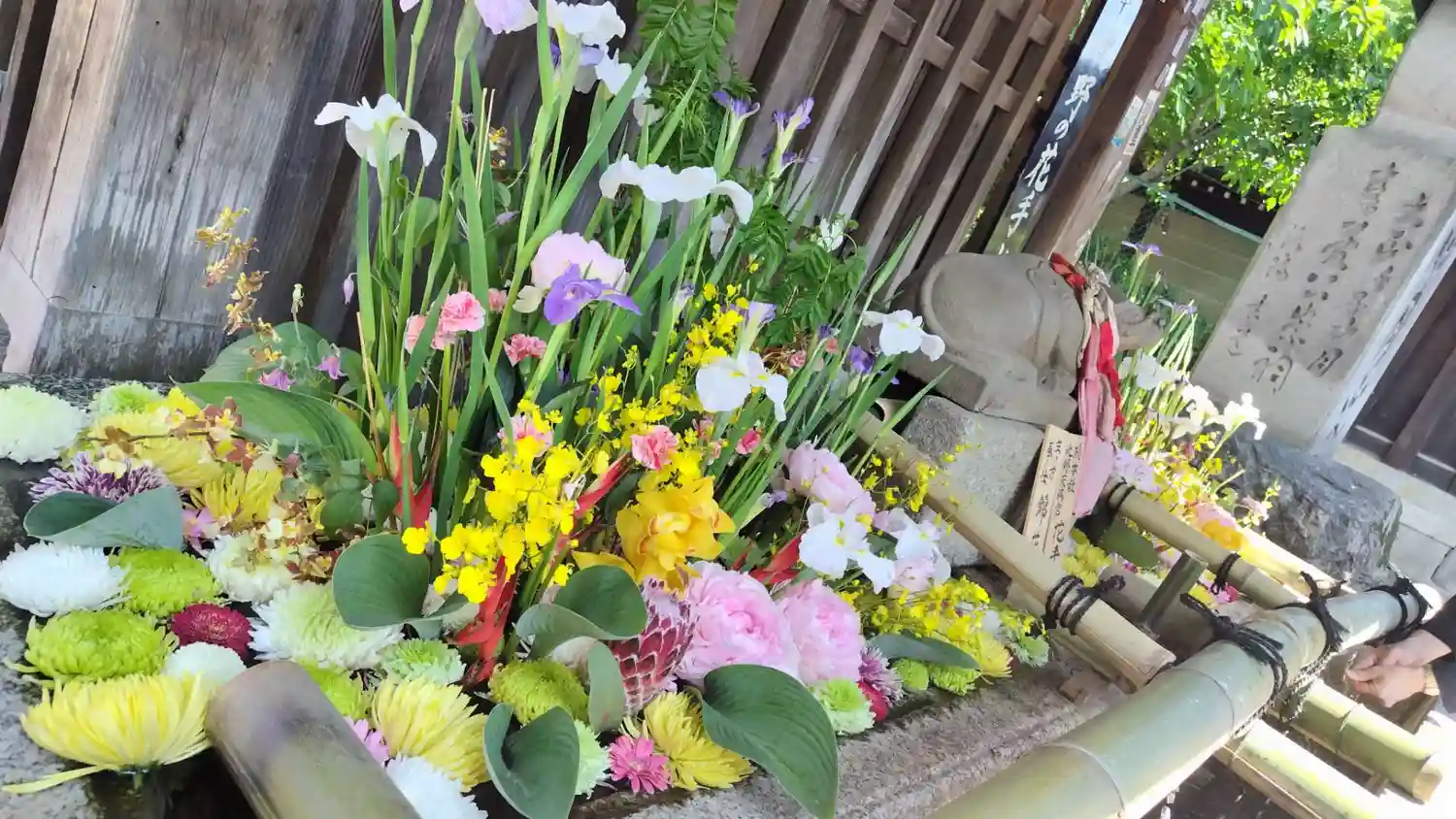 花手水がいつも美しく大好きな場所です。あいにくの雨でしたが、それも綺麗でした。
