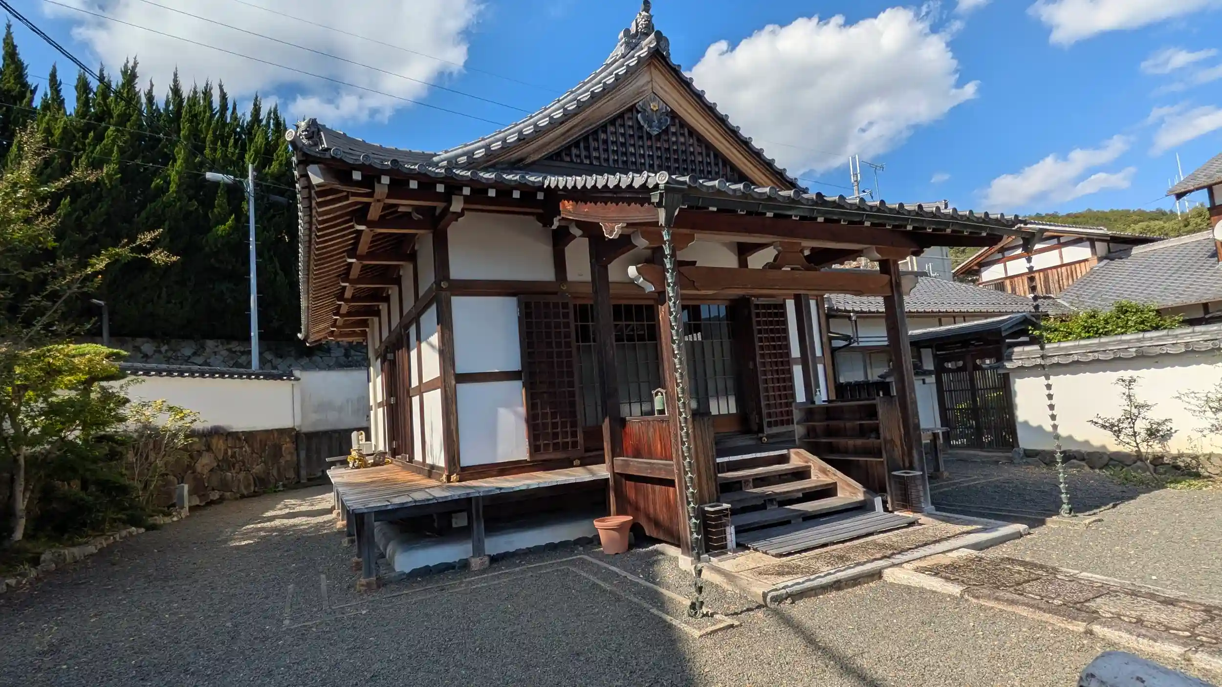 実相院のやや南5分ほどにある浄土宗寺院。GoogleMapだと北側の裏口に案内されます。ぐるっと北側に周ると山門があり傍らに地蔵堂も。山門、勝手口ともに開いておらず、山門にはインターホンもなし。裏口からだったかぁと思いながらもまあ戻る気力もないので門前でお詣りさせていただきました。ネット情報もなしです・・・😅