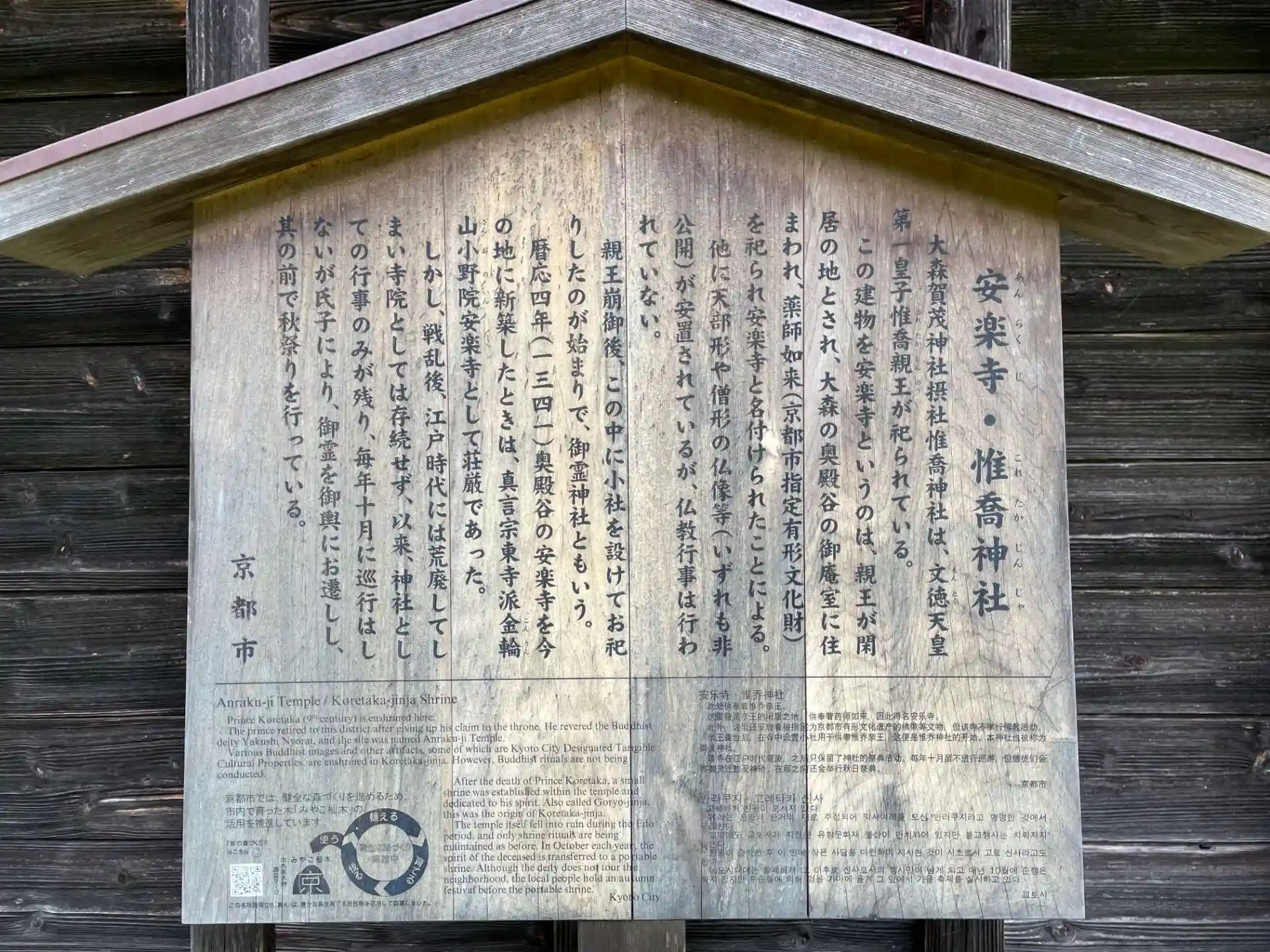 「この建物を安楽寺というのは 親王が閑居の地とされ 大森の奥殿谷の御庵室に住まわれ 薬師如来を祀られ 安楽寺と名付けたことによる。」