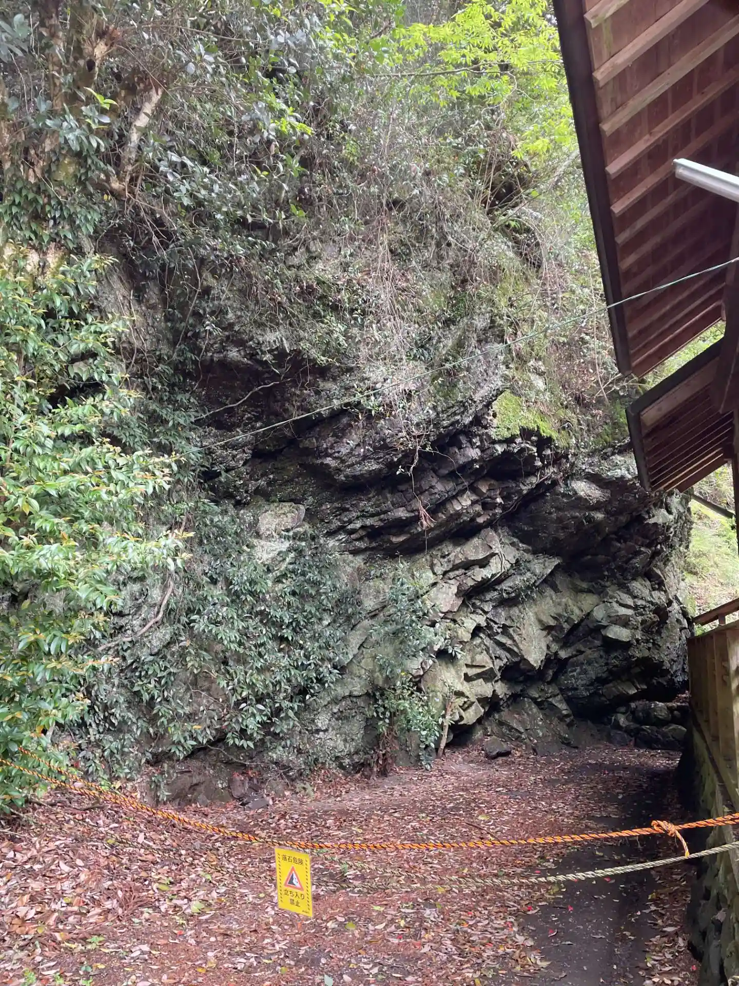 裏手はこわい岩の崖