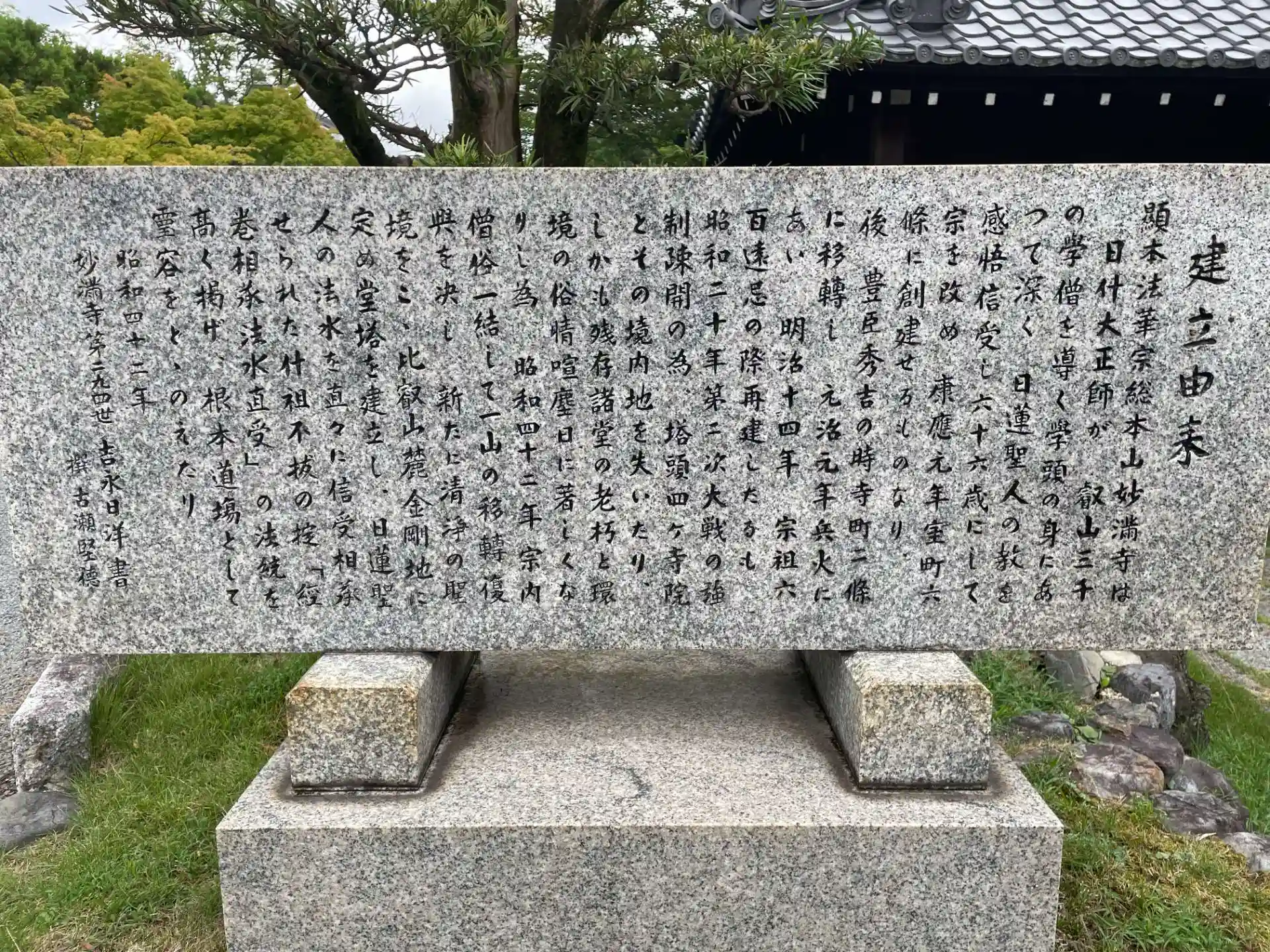 旧寺地である上京区寺町通二条下る榎木町は 現在京都市役所分庁舎や京都市消防局の敷地となっており 付近には妙満寺前町の町名が残っている。