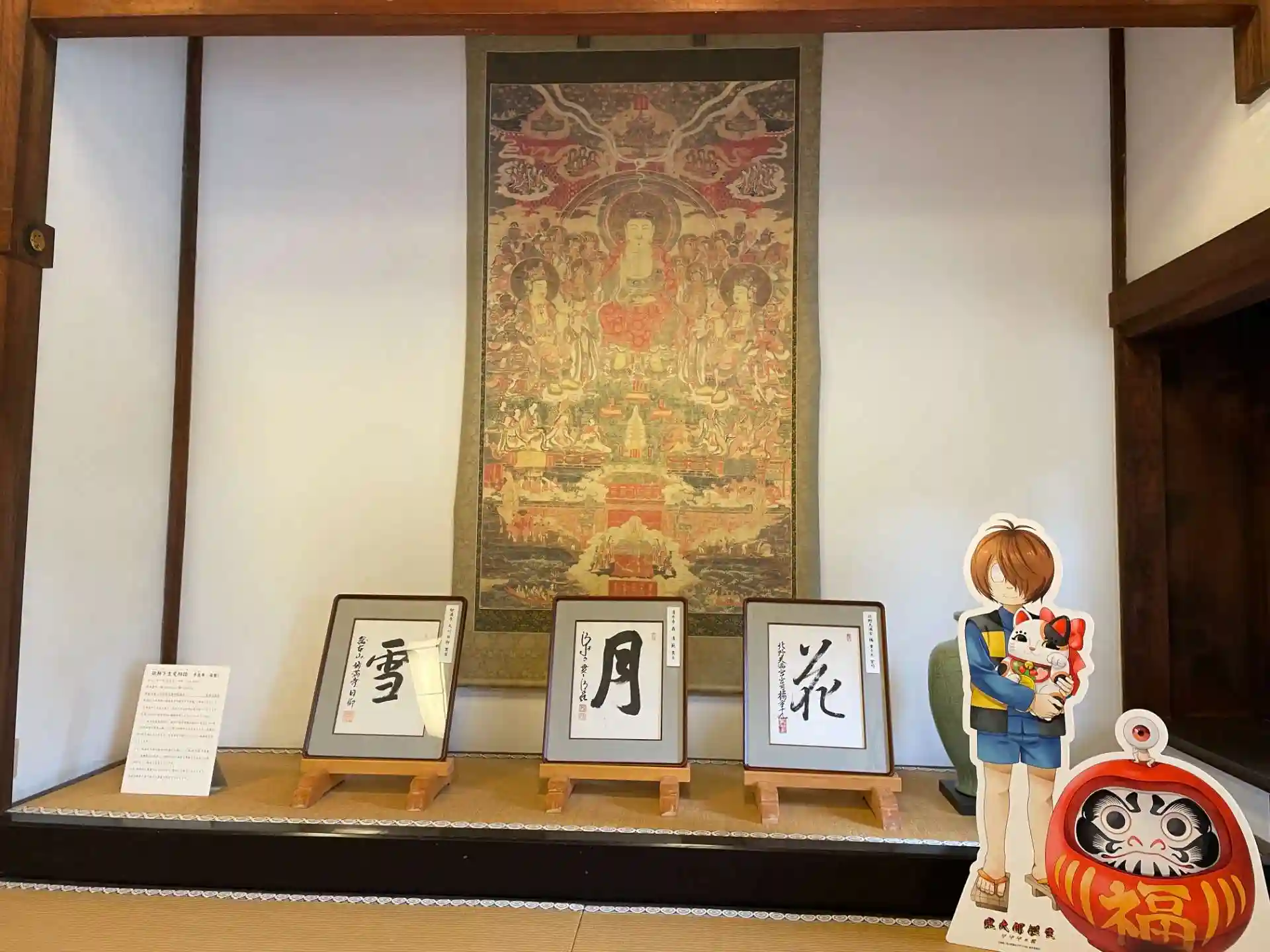 書院には 妙満寺貫首・清水寺貫主・北野天満宮宮司による書 「雪月花」 が置かれています。