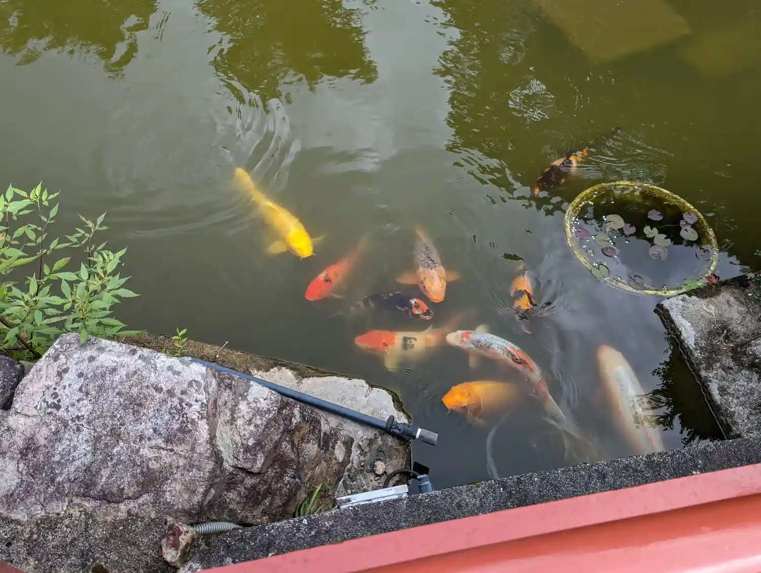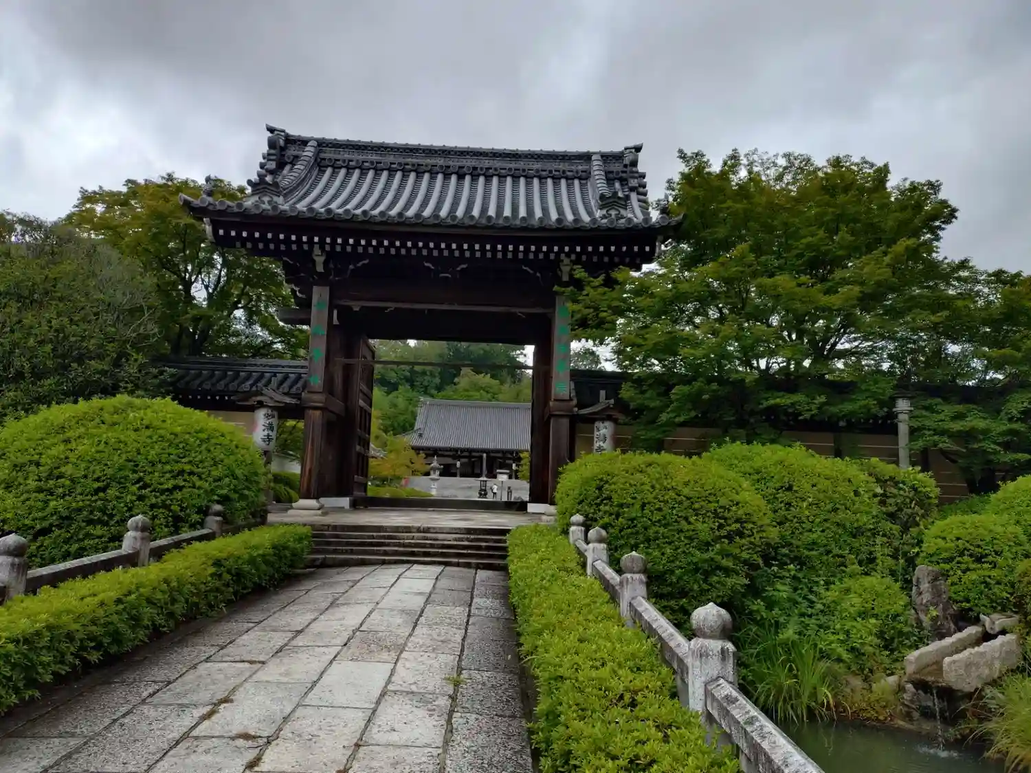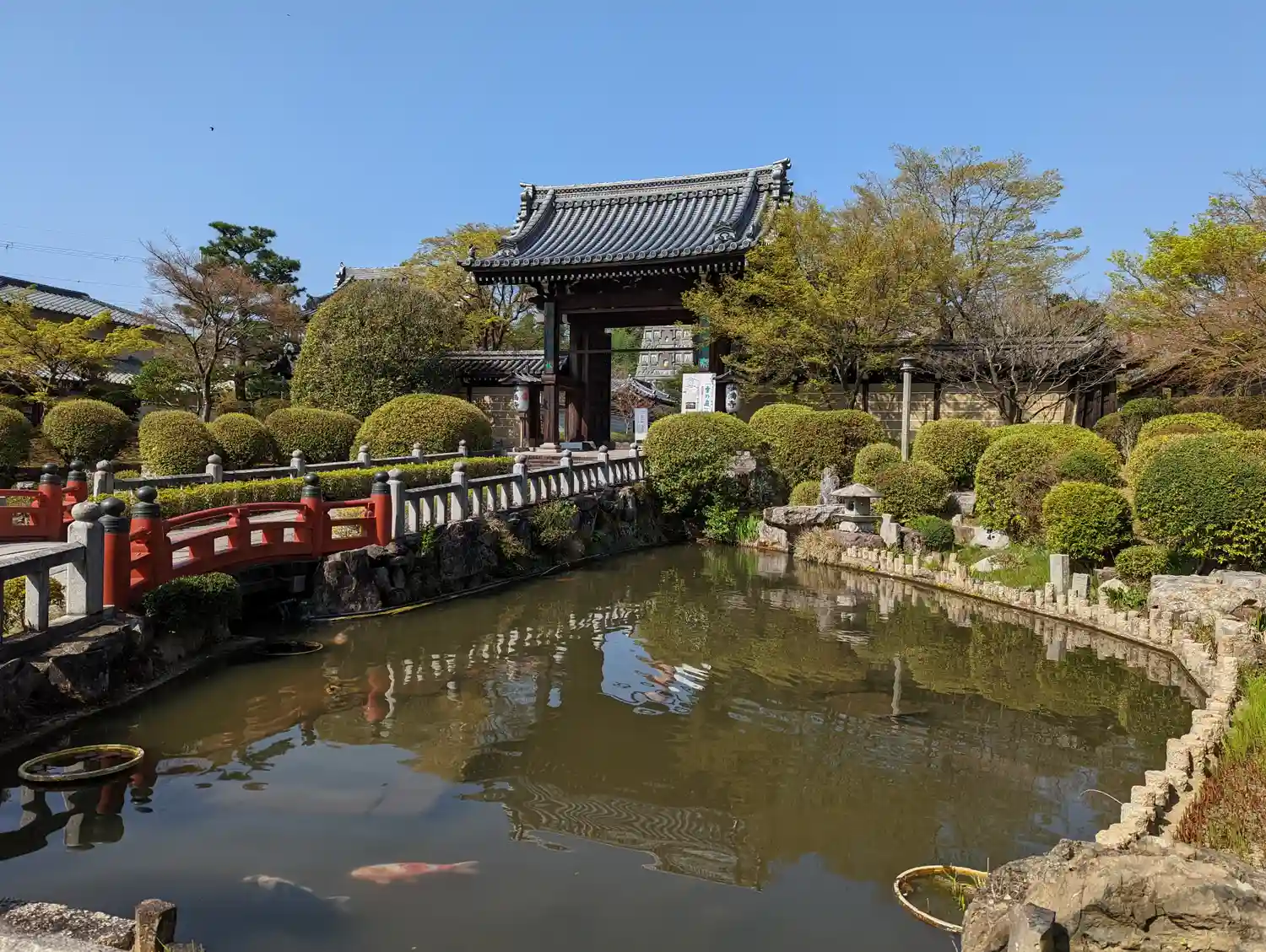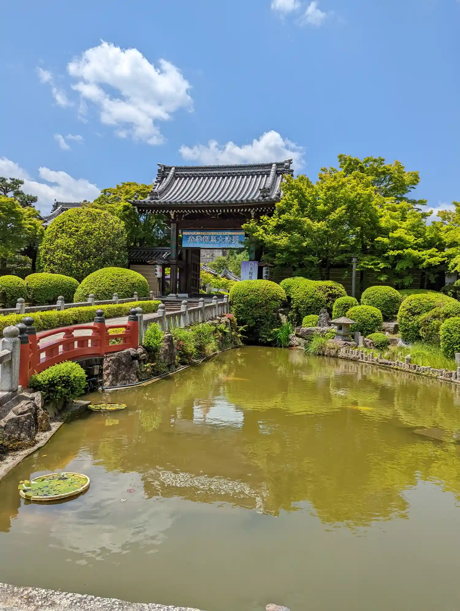 山門手前に池があり橋を通ります