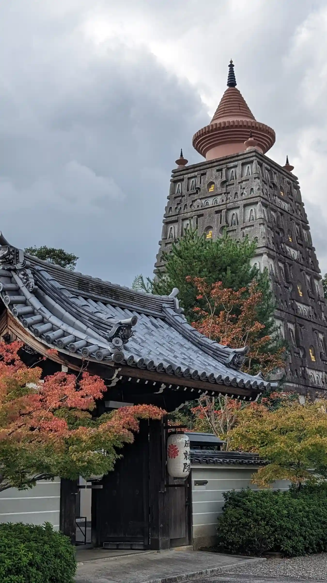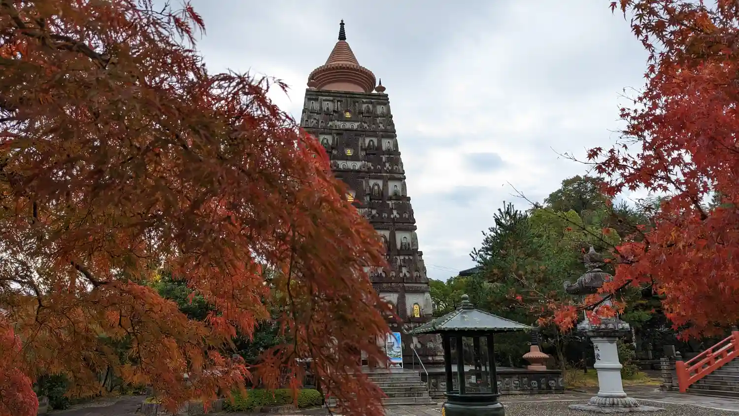 顕法華宗総本山 妙満寺 紅葉の名所とはいわれませんが仏舎利塔に紅葉が相まって なかなかないい感じで…