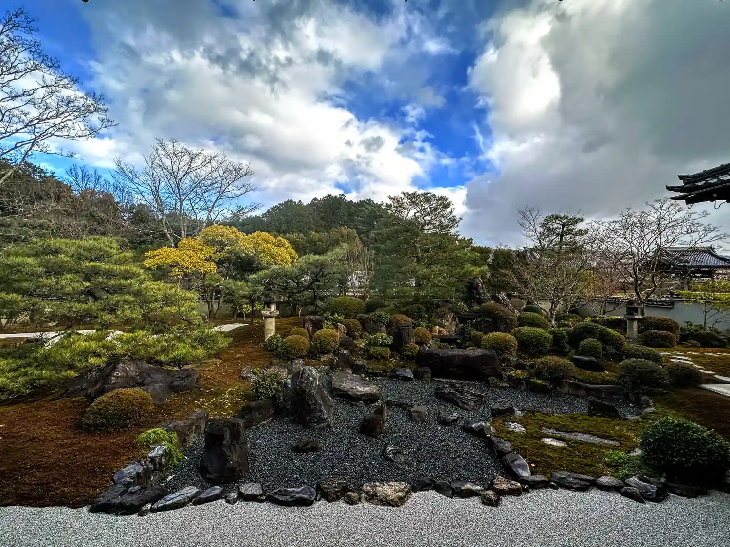 枯山水のお庭が見える。