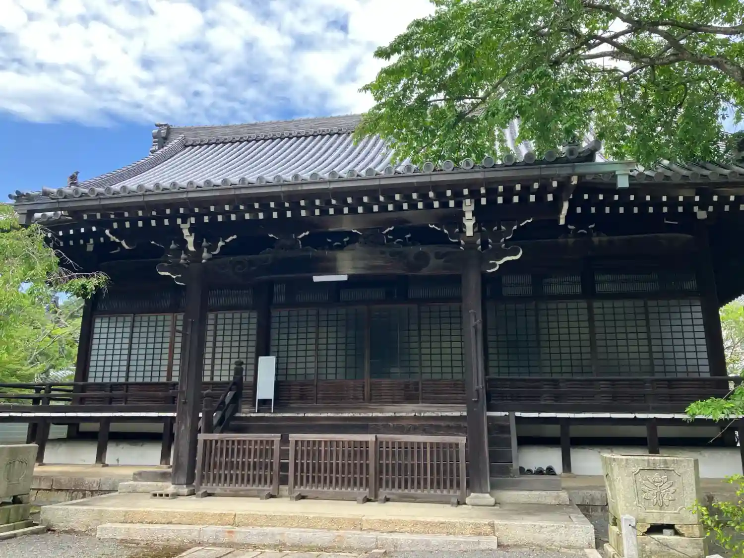 久方ぶりの妙満寺。山門くぐると手水舎の前に休山日の看板が😲毎週月曜(祝日の場合は翌火曜)が休みの様…