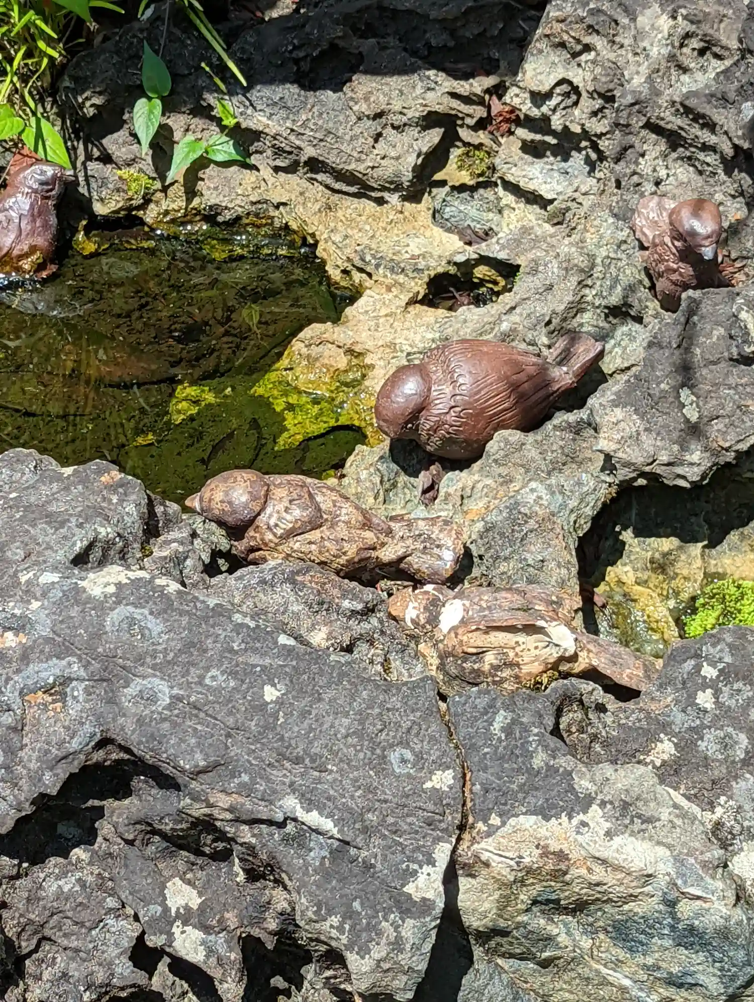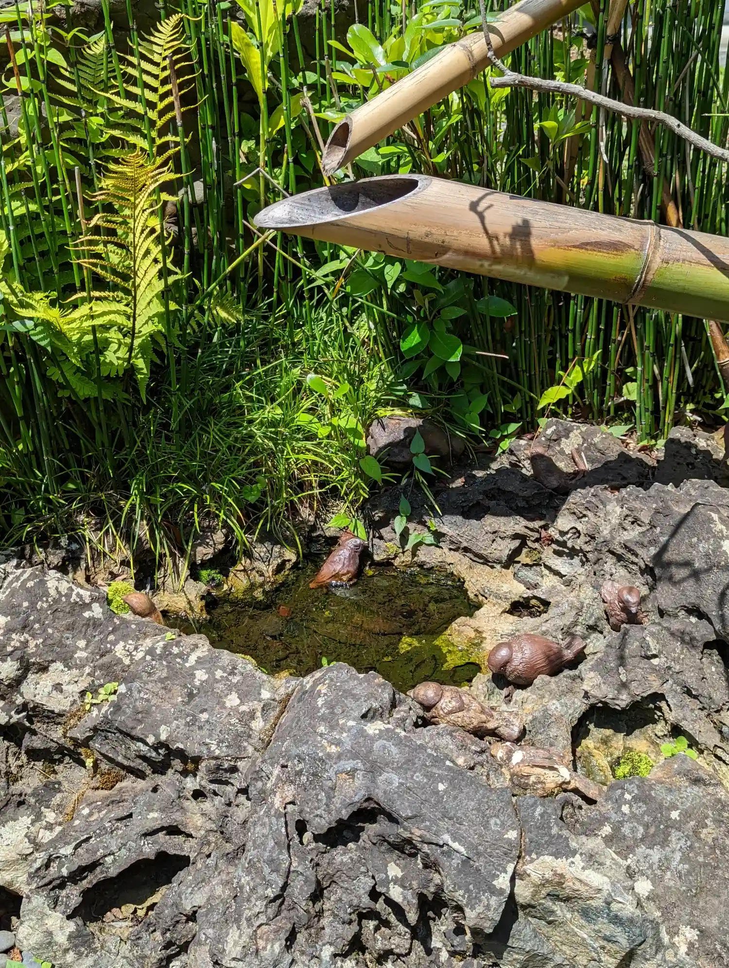 手水鉢にも雀