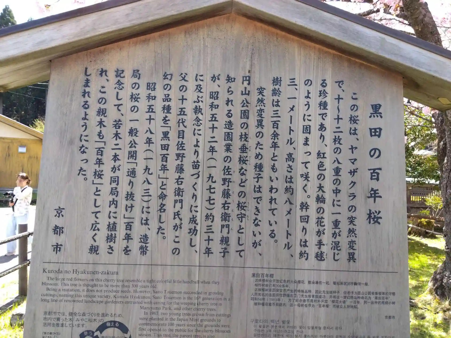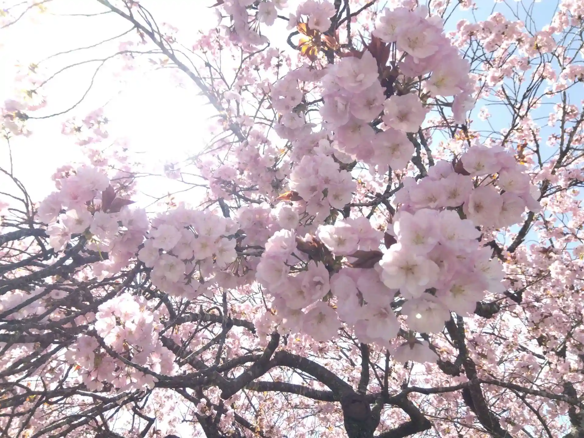 神社前の黒田百年桜はヤマザクラの突然変異で、八重の中に一重が混じり咲く珍種だという🌸