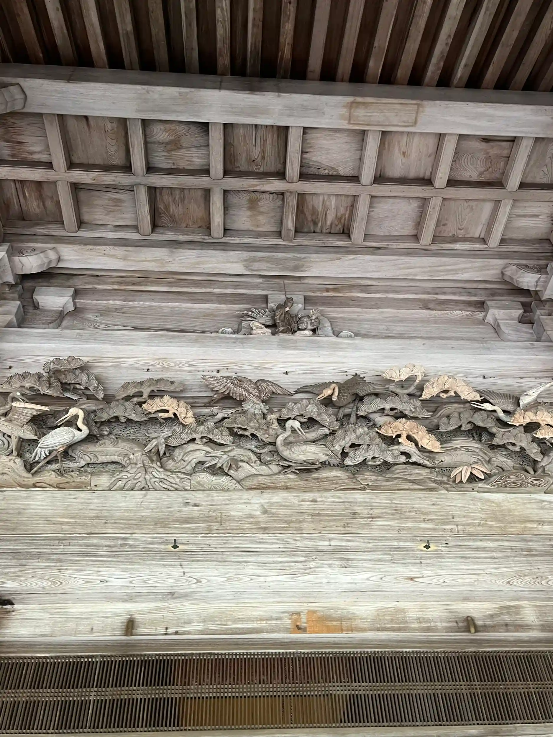 ご本堂軒下の欄間、蟇股(かえるまた)、手挟みに細やかで華やかな彫刻が。