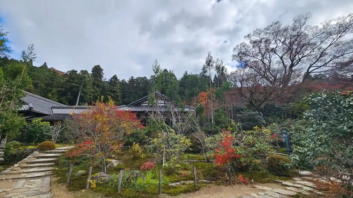 ― 道路から石段を下りるとこぢんまりした清潔で閑雅な実光院のたたずまいの全容があらわれる ―