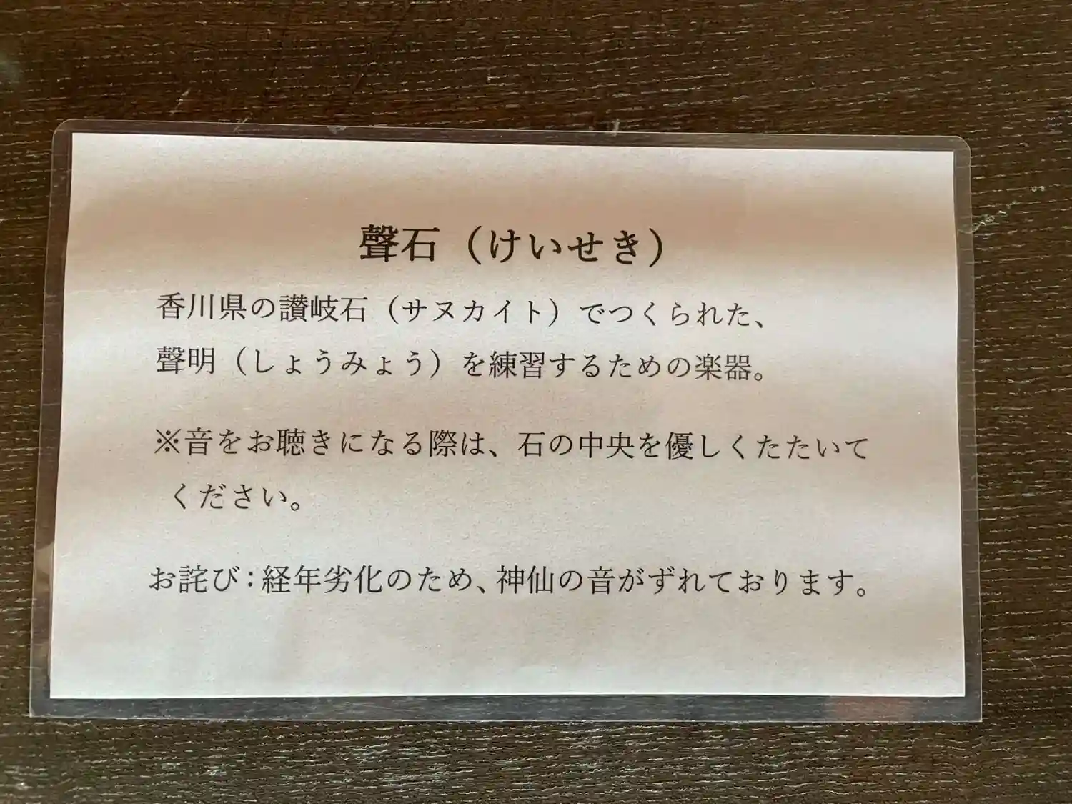 聲石(けいせき) 石琴というのか 鉄琴みたいな音がします