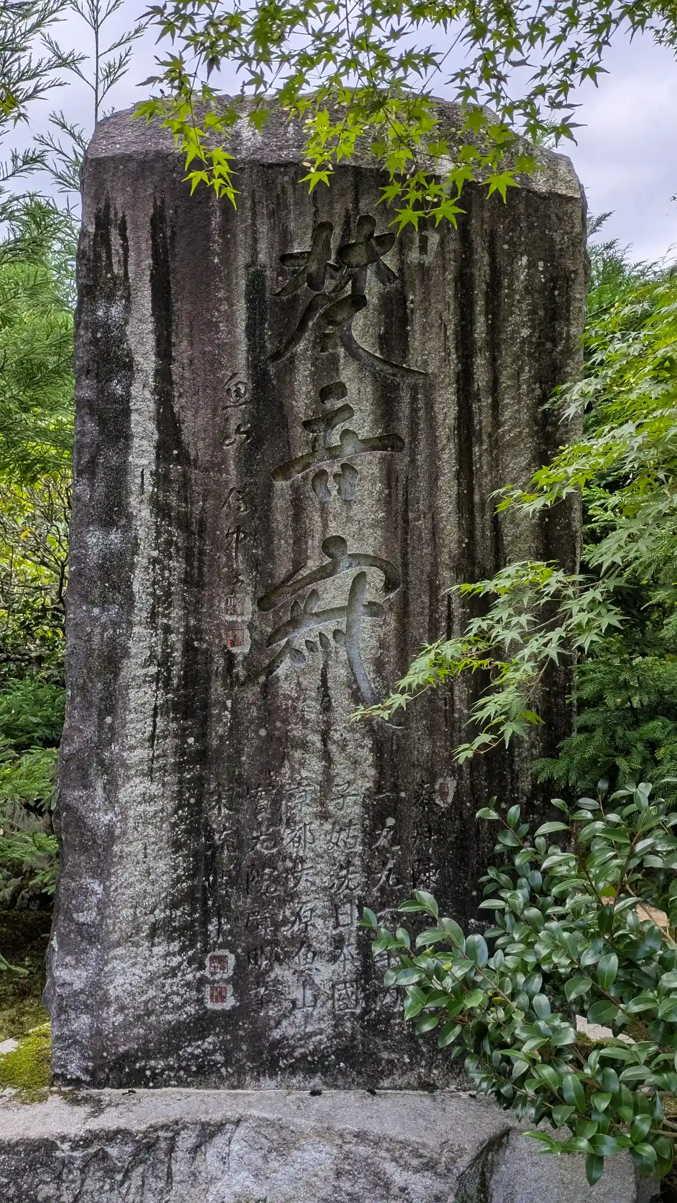 梵音寂石碑。御朱印にも書かれています。「出離者は寂なるか梵音(ぼんのん)を聴く」からですかね。ちなみにこの言葉の「寂」と「聴」から瀬戸内寂聴さんの法名がつけられたそう。