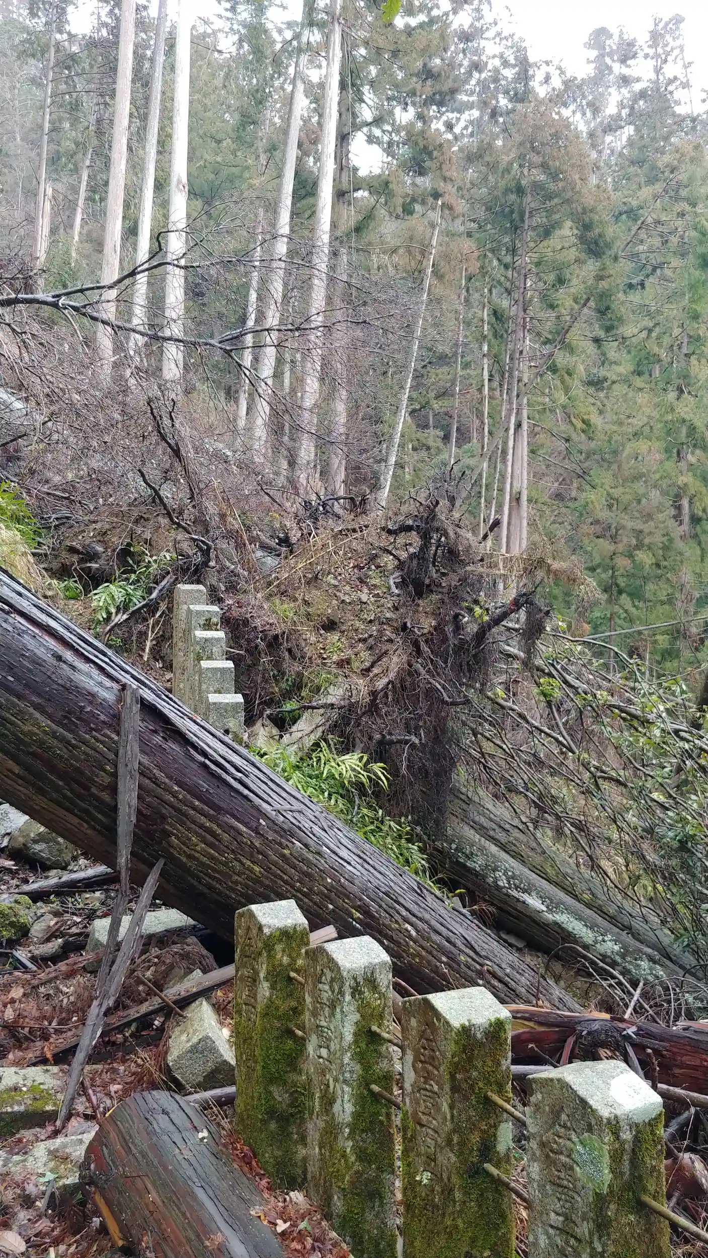 山奥も山奥すぎて重機を入れられない都合で台風被害の復旧作業は遅々として進まず。参道は通れるんですが。