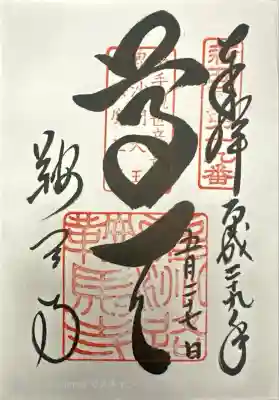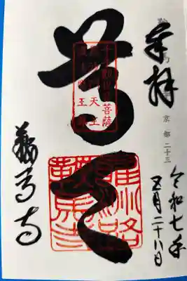 右から「新西国第十九番」、真ん中の上部に「千手觀世音菩薩 毘沙門天工 護法魔王尊」、下部に「雍洲路鞍馬寺」印が重ねられています。