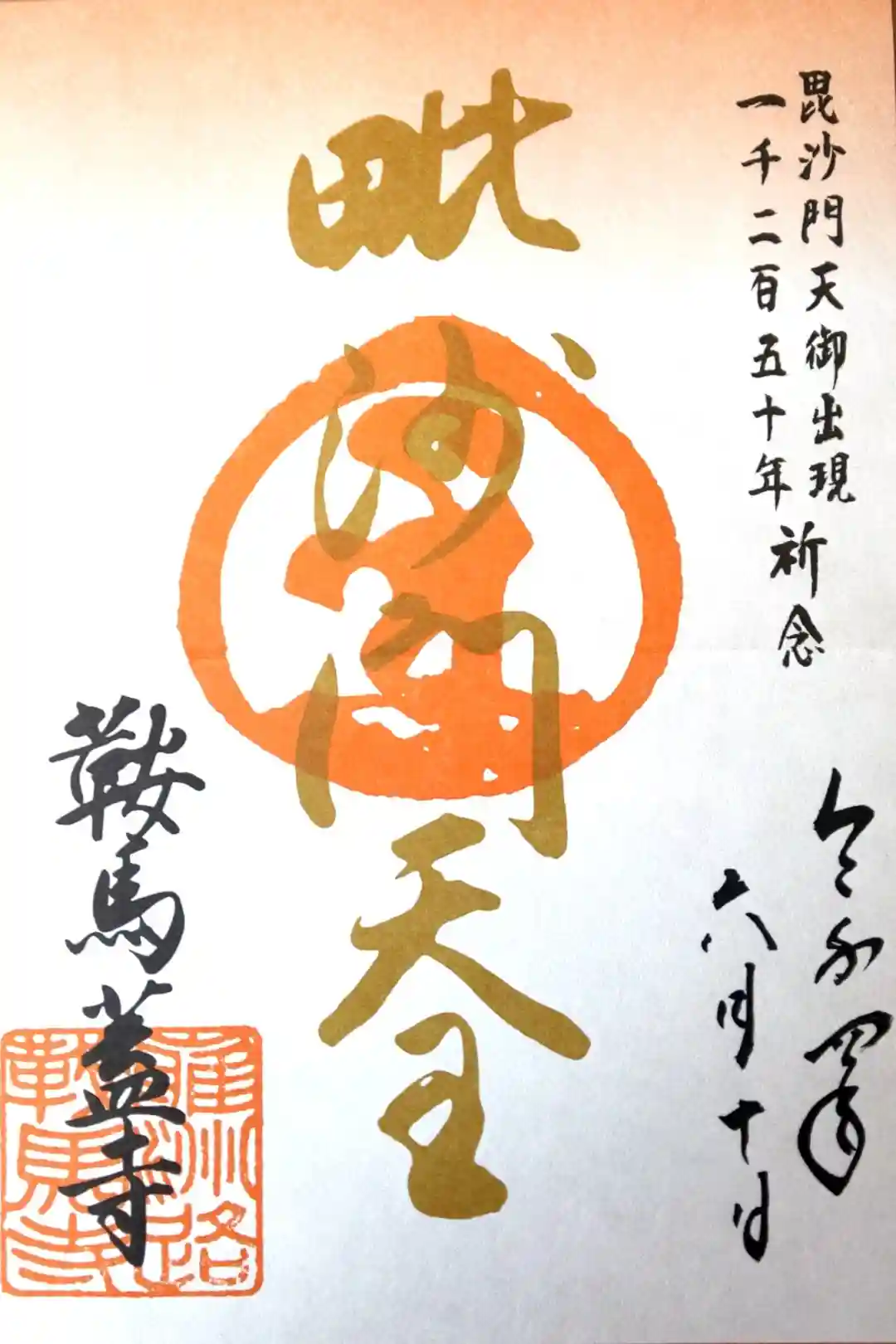 鞍馬寺 開創1250年記念限定御朱印