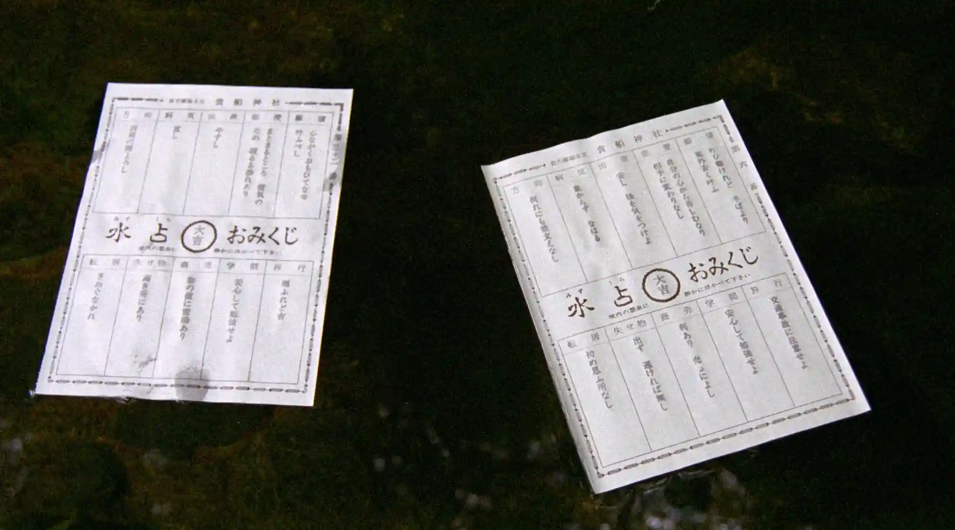 川床料理のあと、水みくじをやってみました。