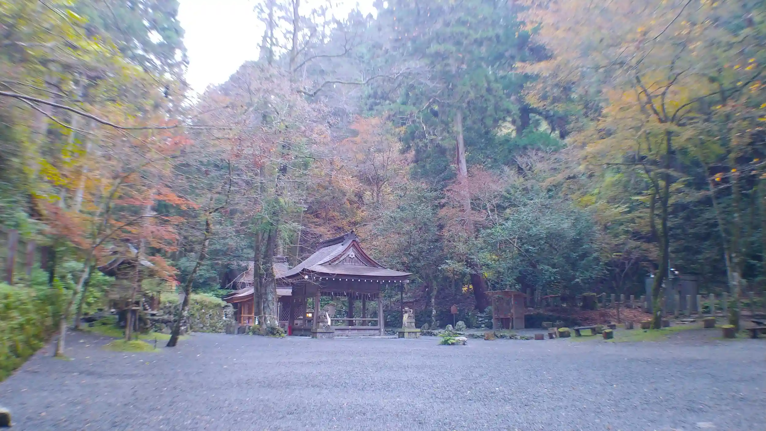 うまと本殿と紅葉。