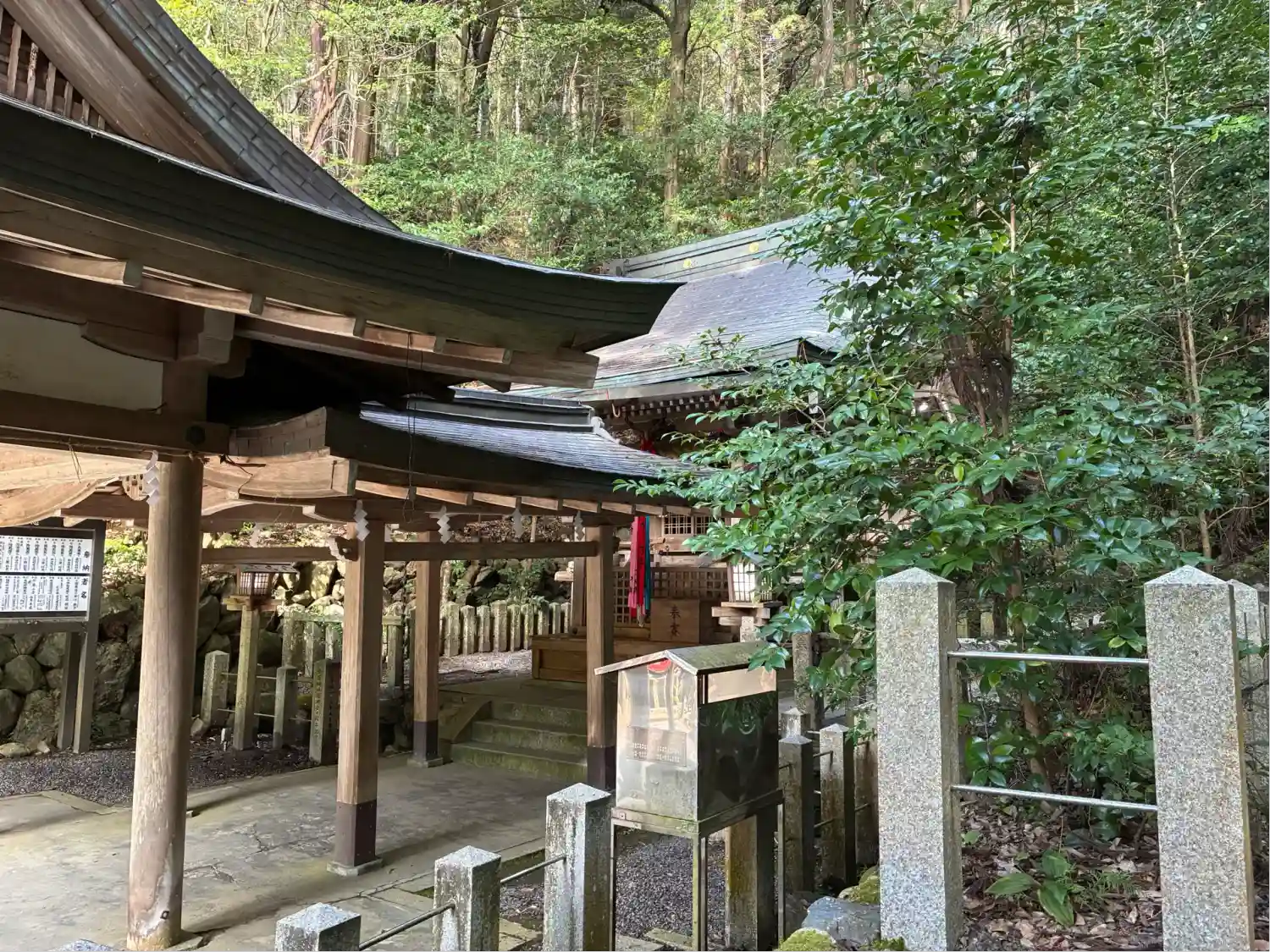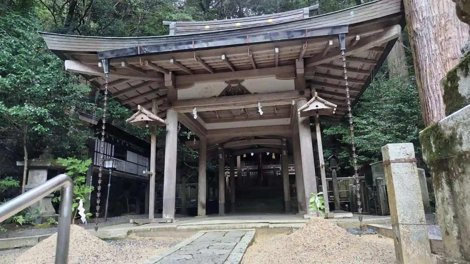 本殿の階段前に、横にそれる道と空間が。