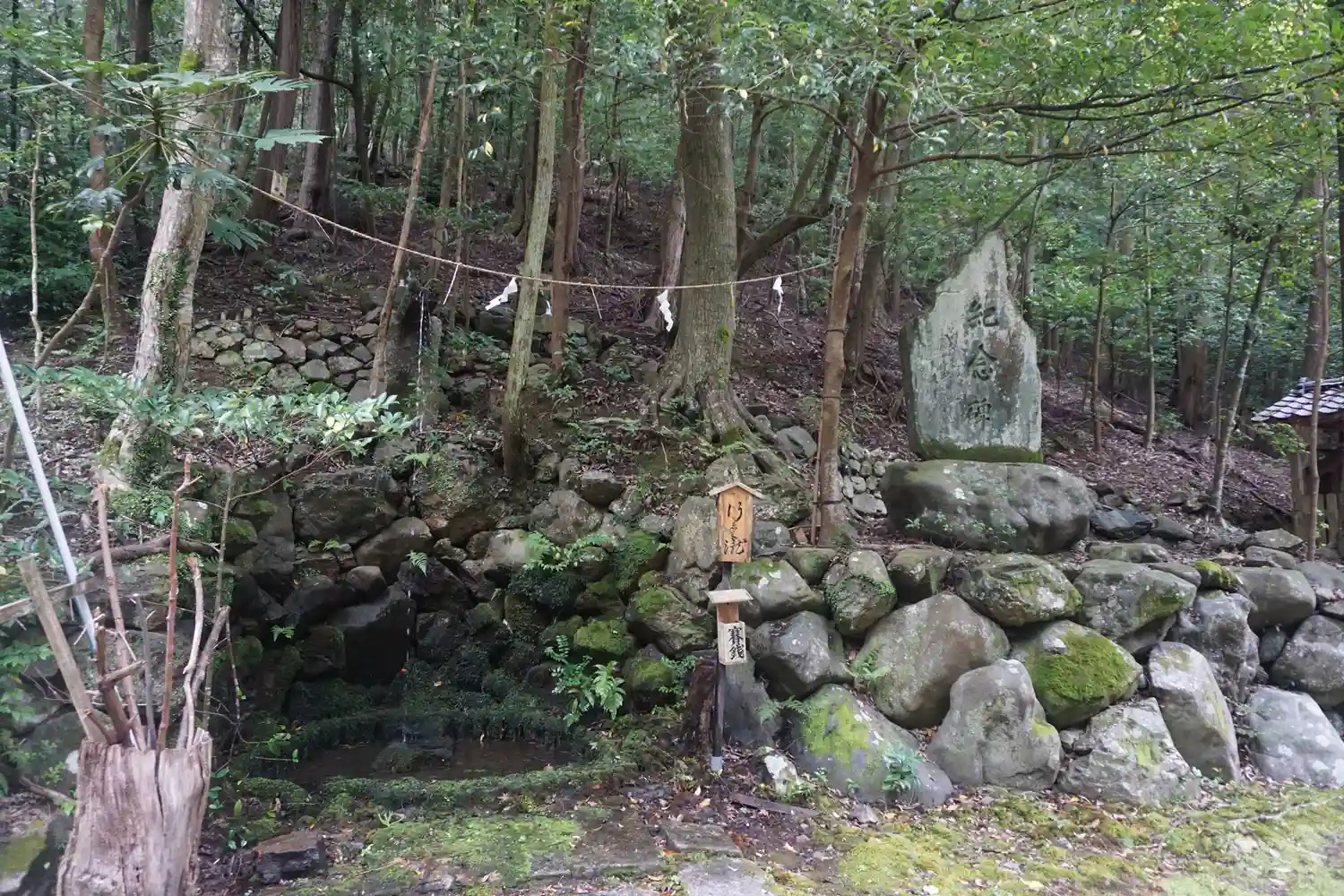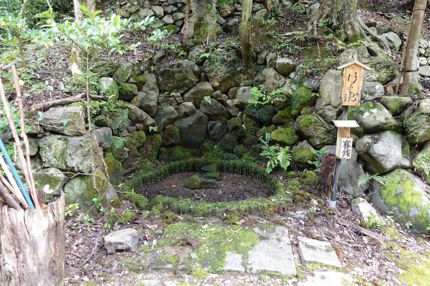 参道途中から寄り道すると 小野毛人朝臣墓への登山用に杖があります