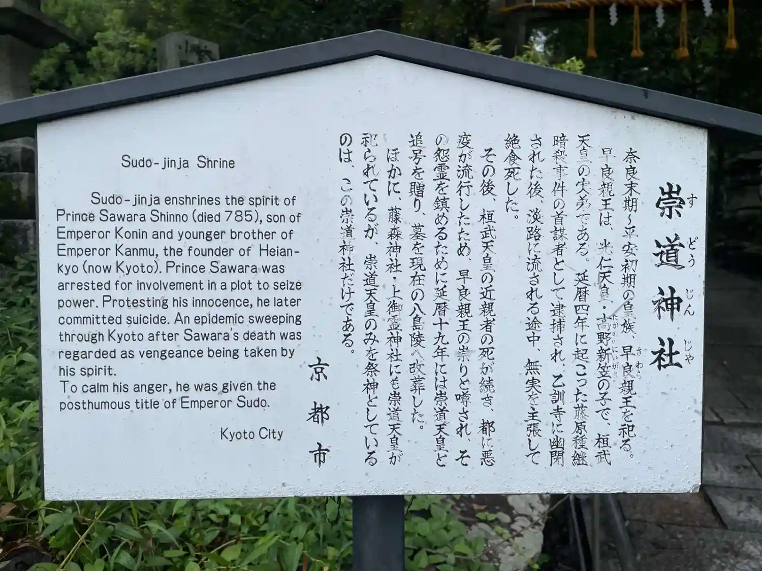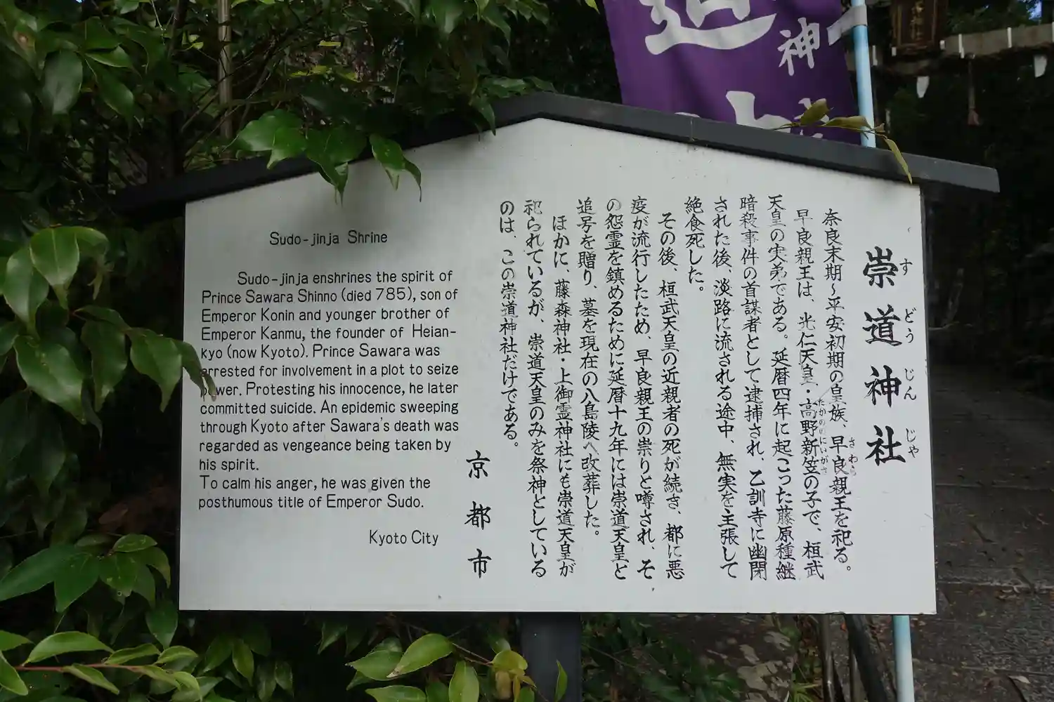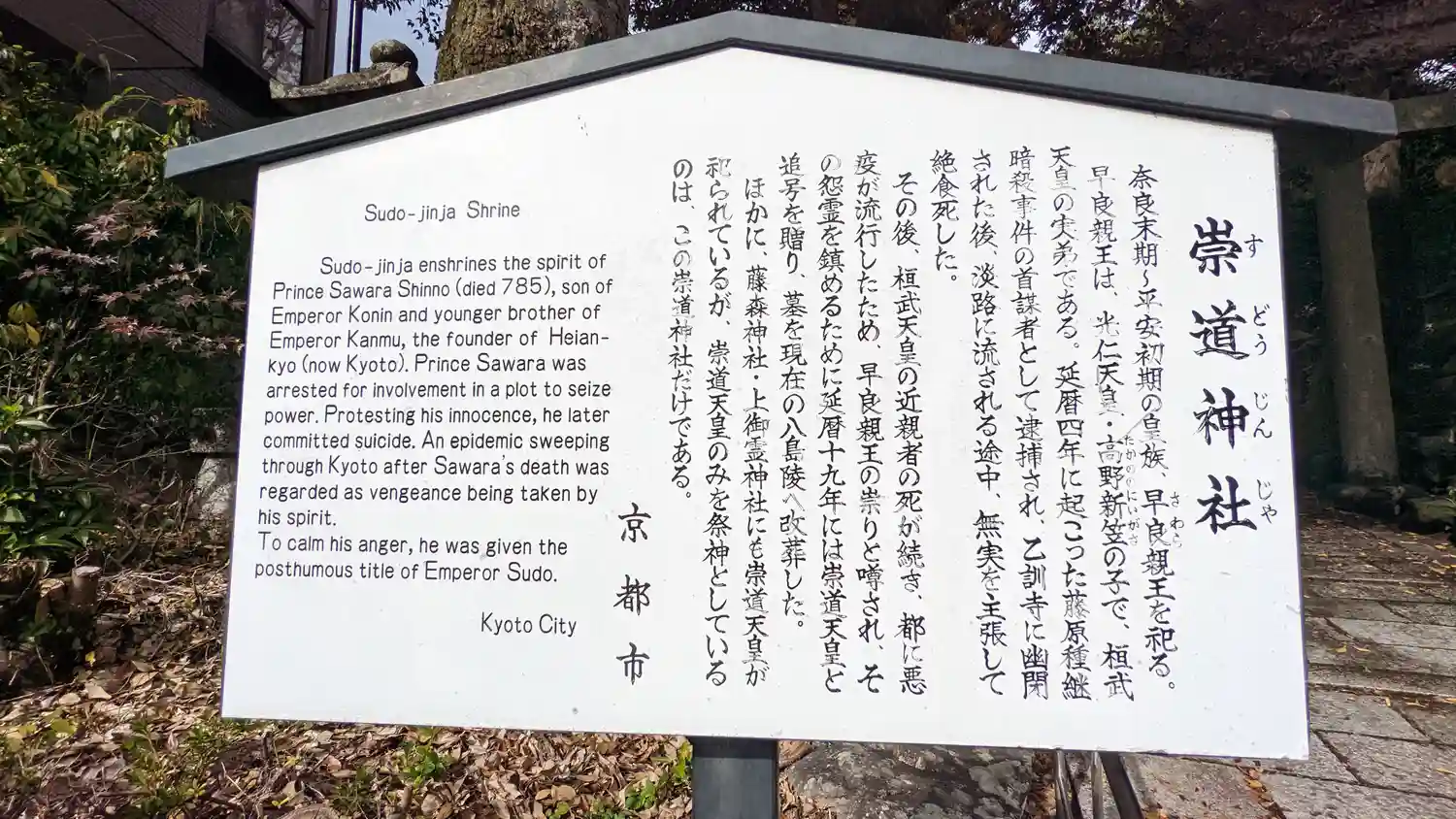 栖賢寺お隣。怨霊伝説の第一人者である早良親王を祀る。早良親王が単独で主祭神として祀られているのは全…