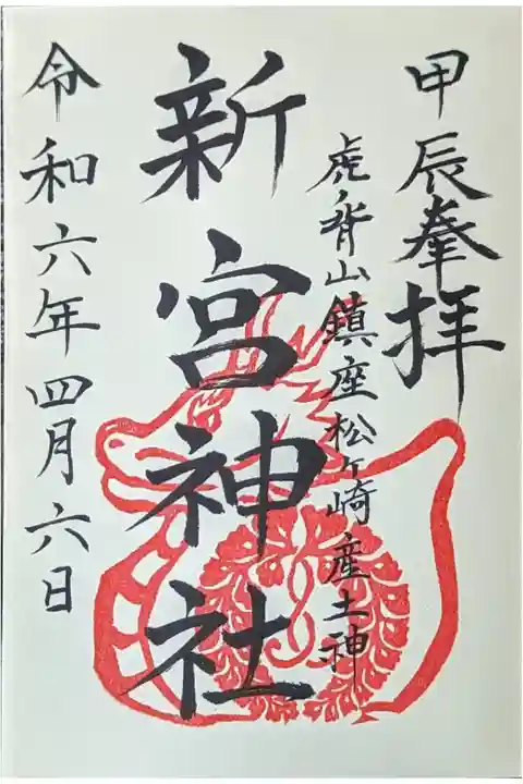 松ヶ崎大黒天近くの新宮神社へ。地域の氏神さんのよう。社務所に居られたので御朱印お願いしました😊朱印が神紋と干支の辰、神社の虎の背にちなんで虎の印が選べるとのことで干支の辰でお願いしました。神紋が下がり藤なので春日さんの系統かなとお尋ねしたらもともと九条家の領地でその家紋なのだそう。御祭神は新宮らしく伊弉諾・伊弉冉の尊と猿田彦命とのことでした。社号も三度ほど変わって今の新宮は明治になってからだそうです。