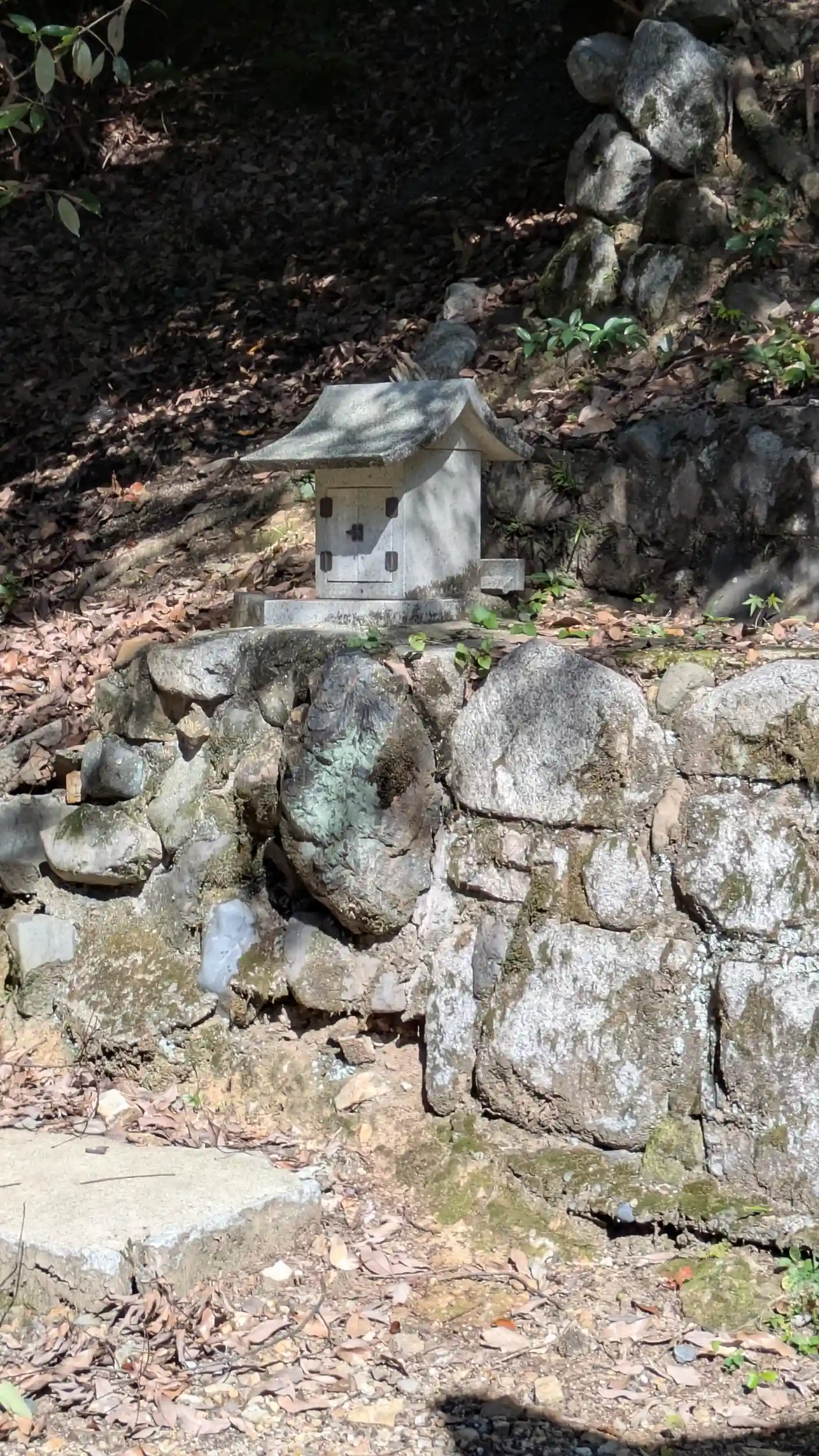 桜井水の少し先に鳥居があり「末刀(まと)岩上神社」社号標と御題目の石碑があるので涌泉寺の鎮守社なのかな?と思いましたがその手の情報は見当たらずでした😅鳥居先の階段を昇ると拝殿がありますが本殿は?となりましたが御神木らしき木の後ろに玉垣に囲まれた磐座がありました😲