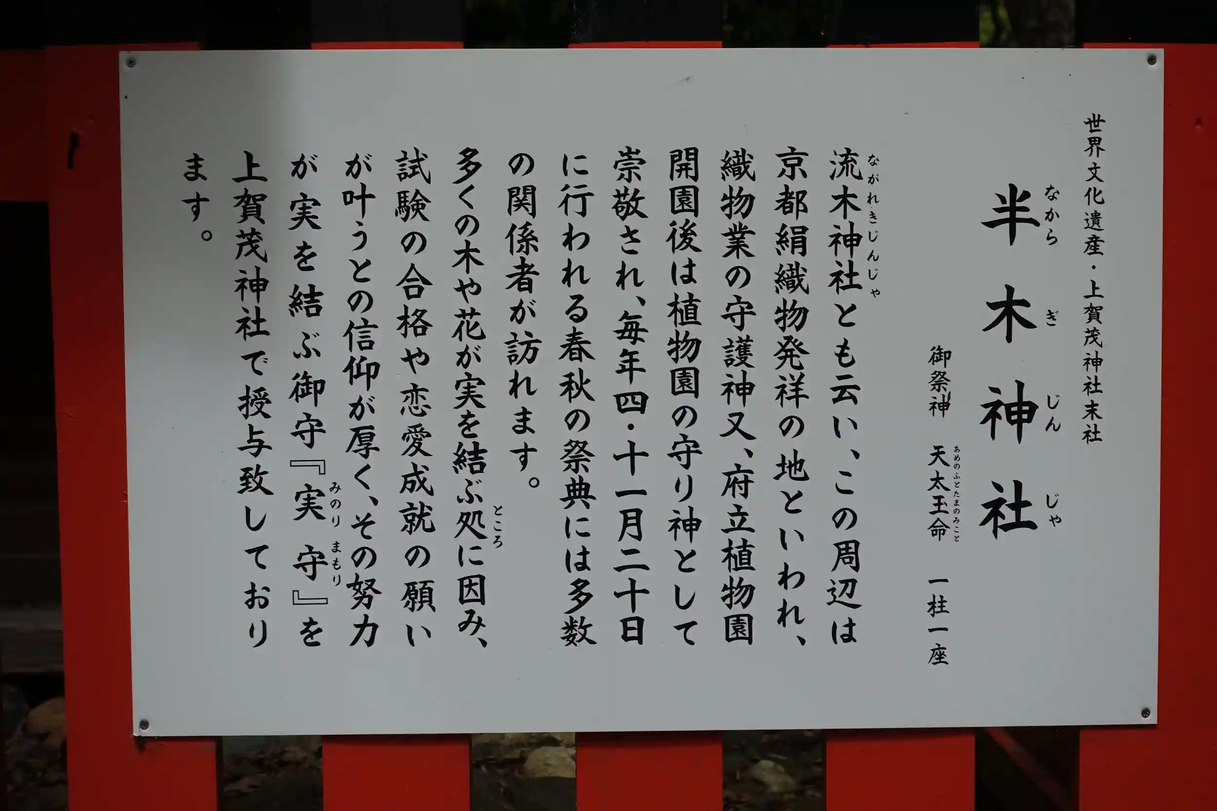楽しみ方半木神社(賀茂別雷神社境外末社)のお参りの記録(1回目)