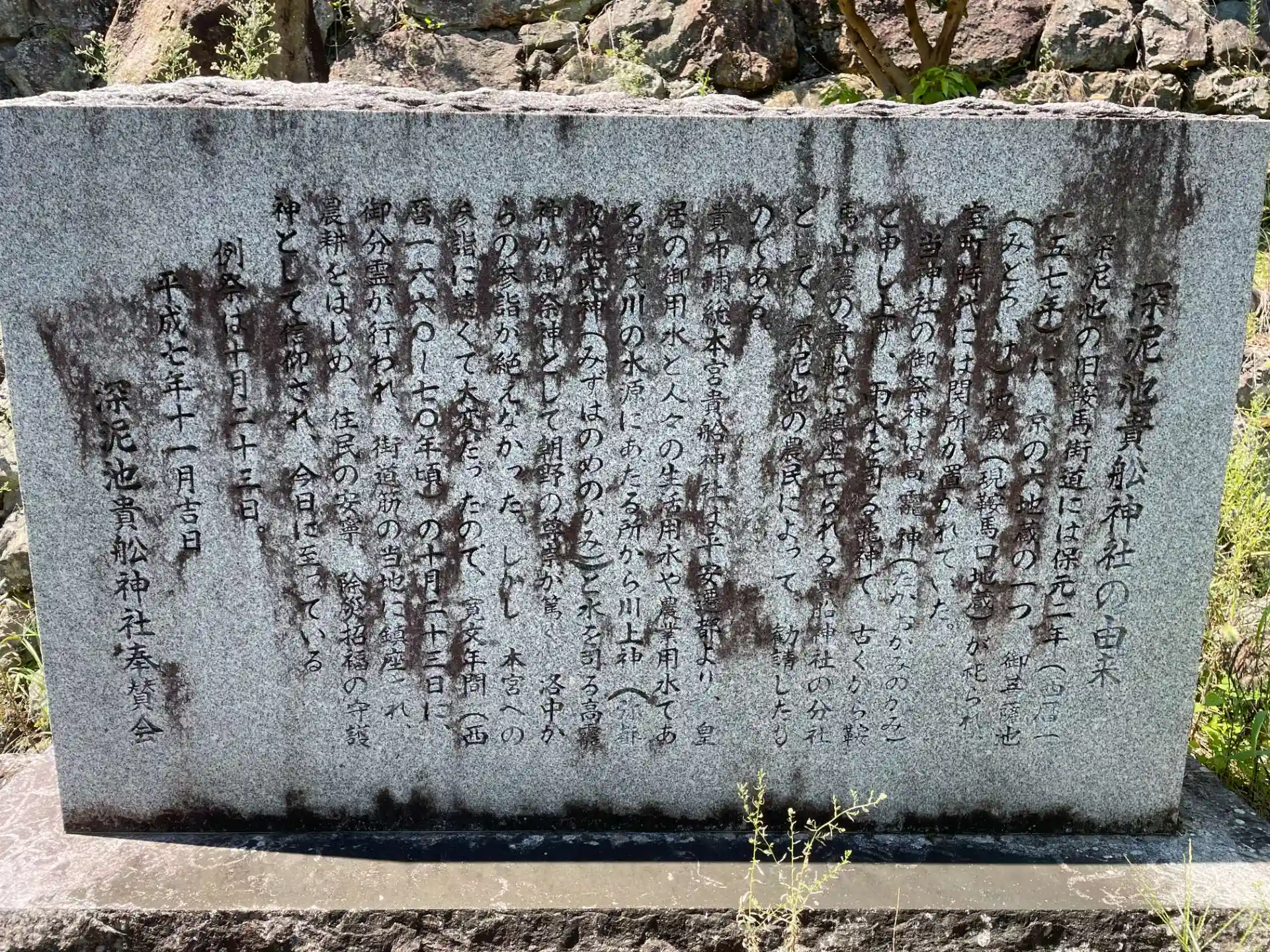 京都市左京区鞍馬貴船町 鞍馬山の西 貴船山麓の貴船に鎮座する貴船神社の分社の一つで 単に「貴舩神社」とも呼ばれ 本社と同じく雨水を司る龍神である高尾神(たかおかみのかみ)が祀られています。