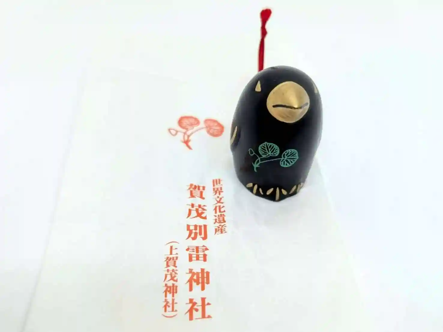 お腹に上賀茂神社の御神紋(二葉葵)が描かれた八咫烏は三角の目をして睨みを効かせています。