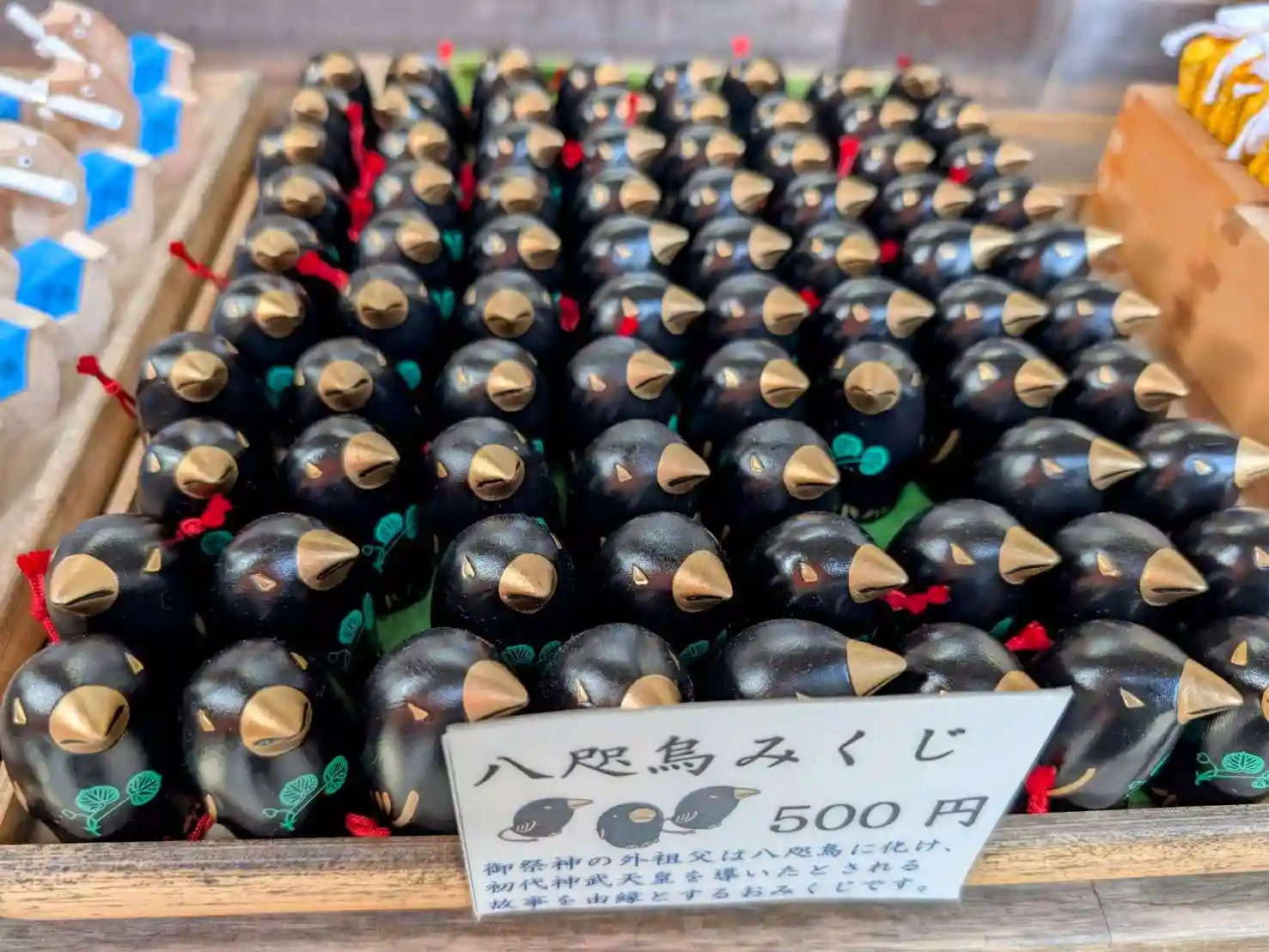 八咫烏は古くから魔除けや厄除けの力を持つと信じられており、おみくじを引いた後も縁起物として大切に飾る人が多いそうです。