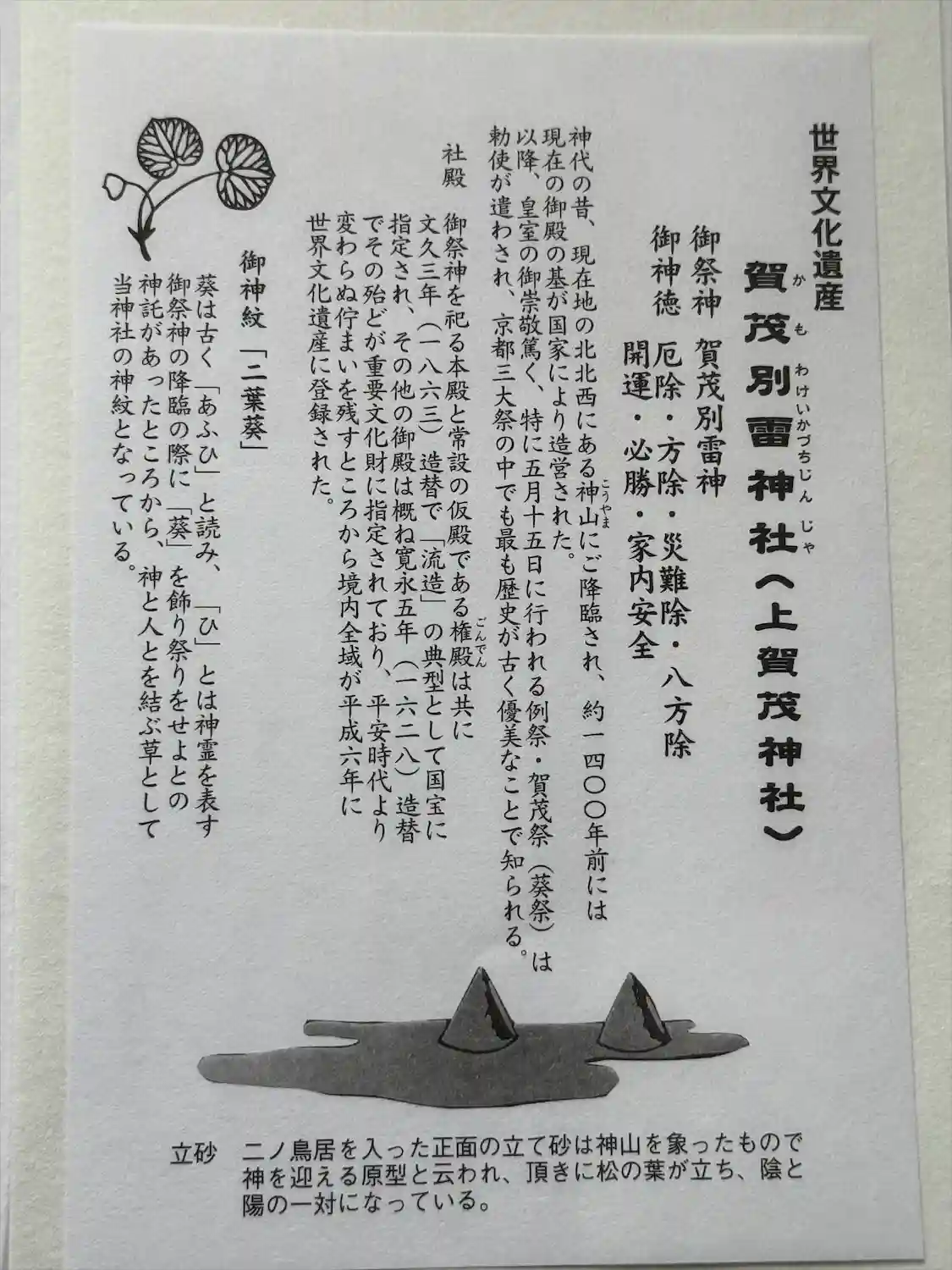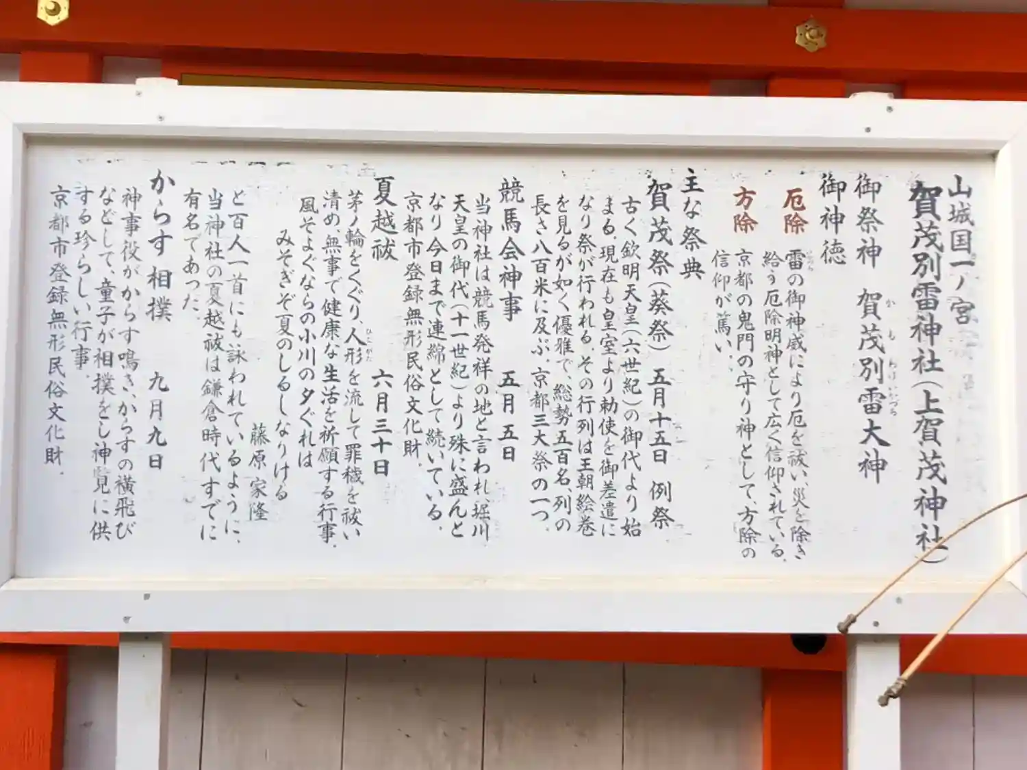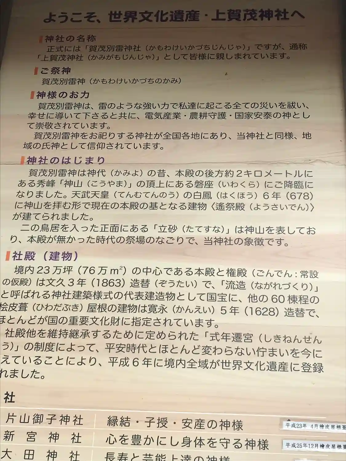 上賀茂神社、説明文
