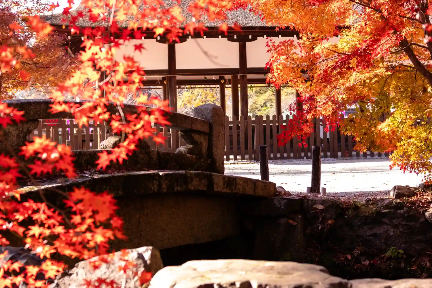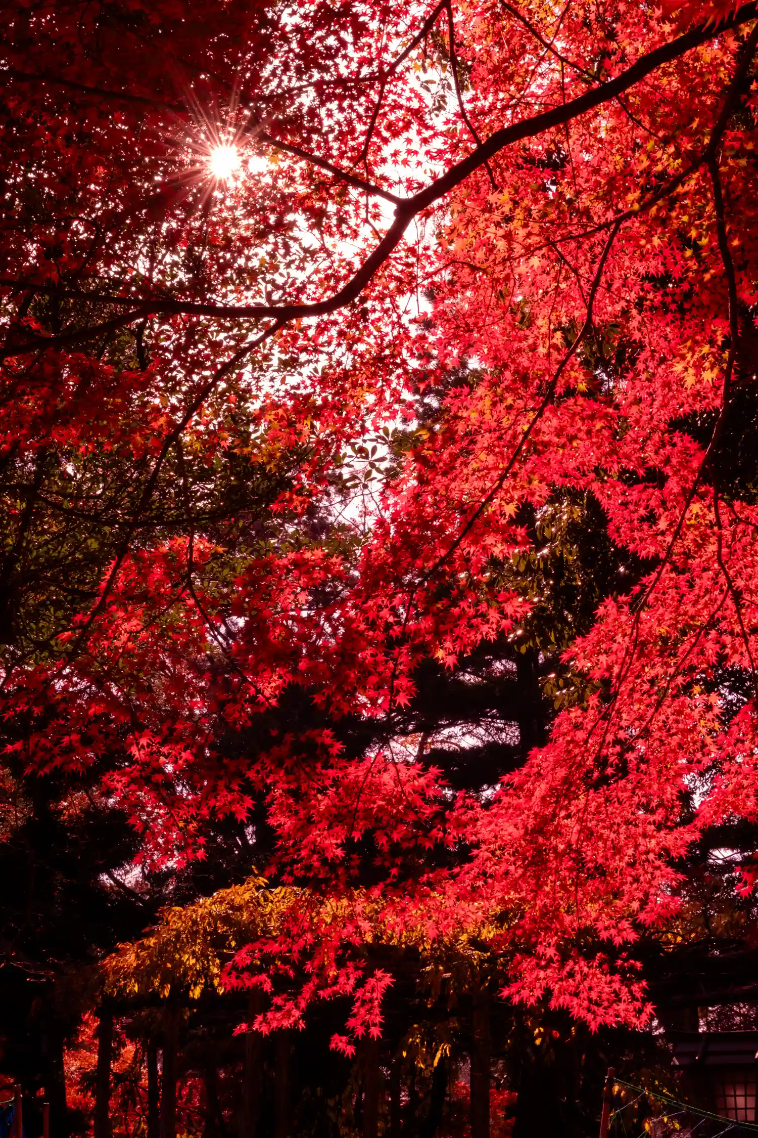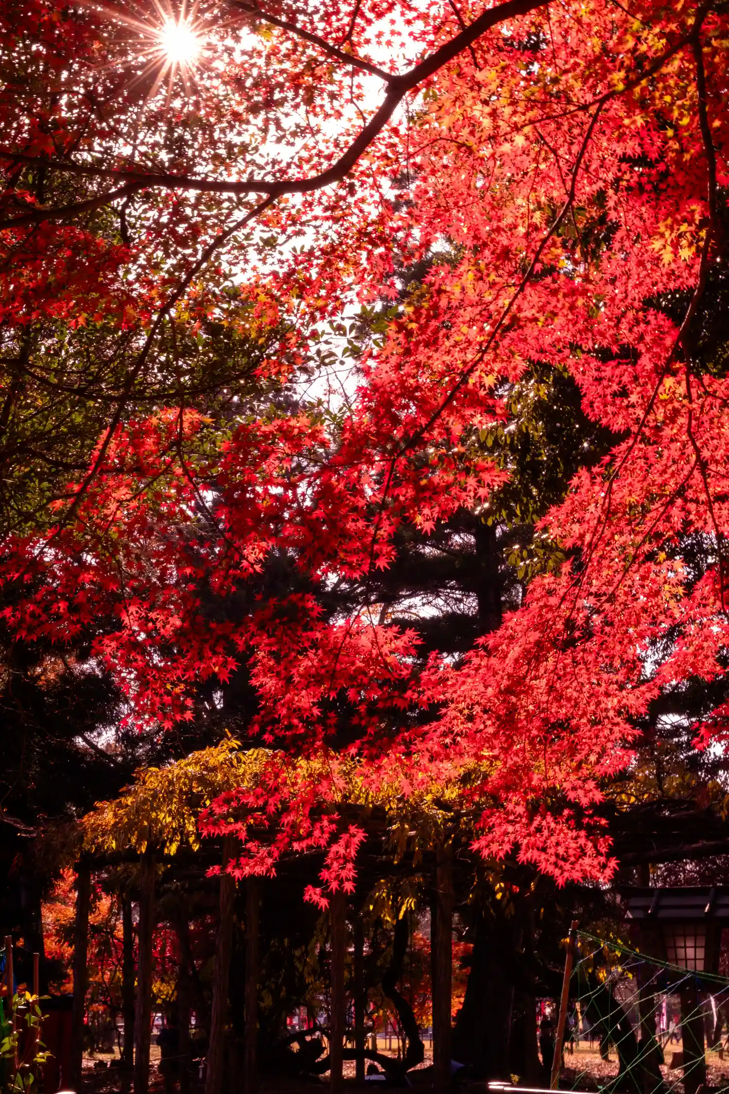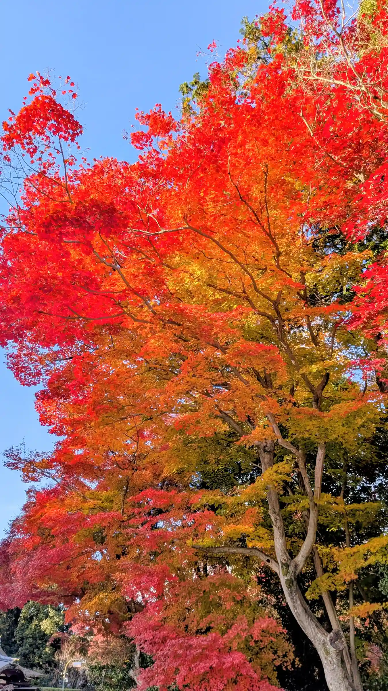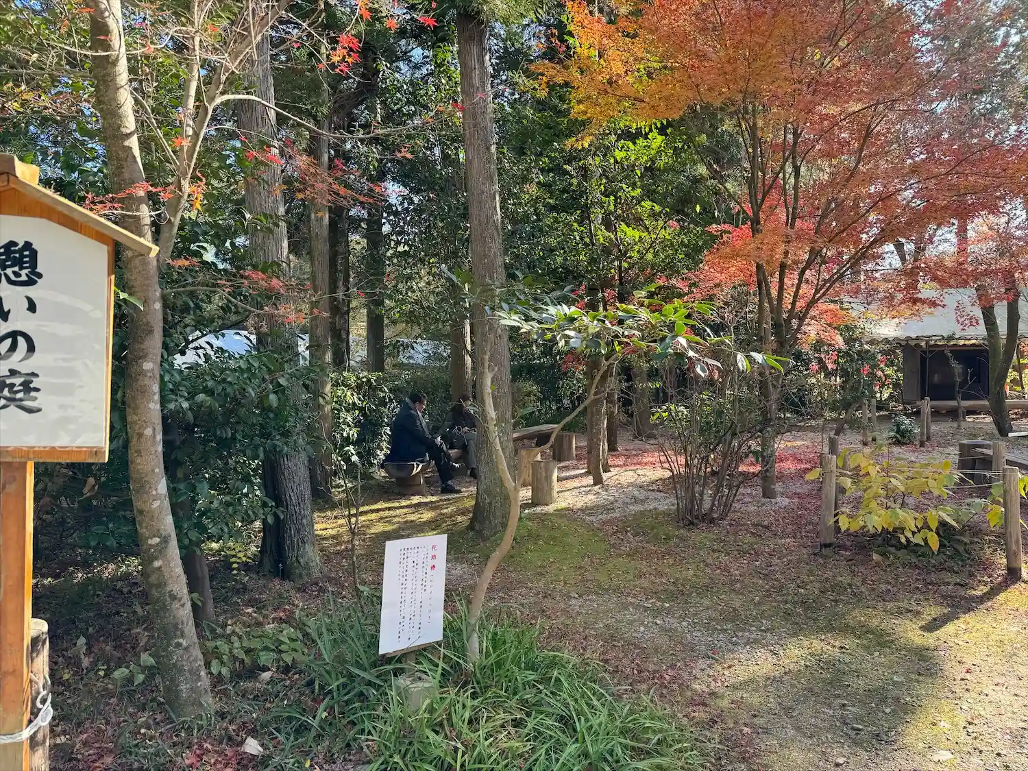 丁度、紅葉の時期で広い敷地に赤い木々が鮮やか