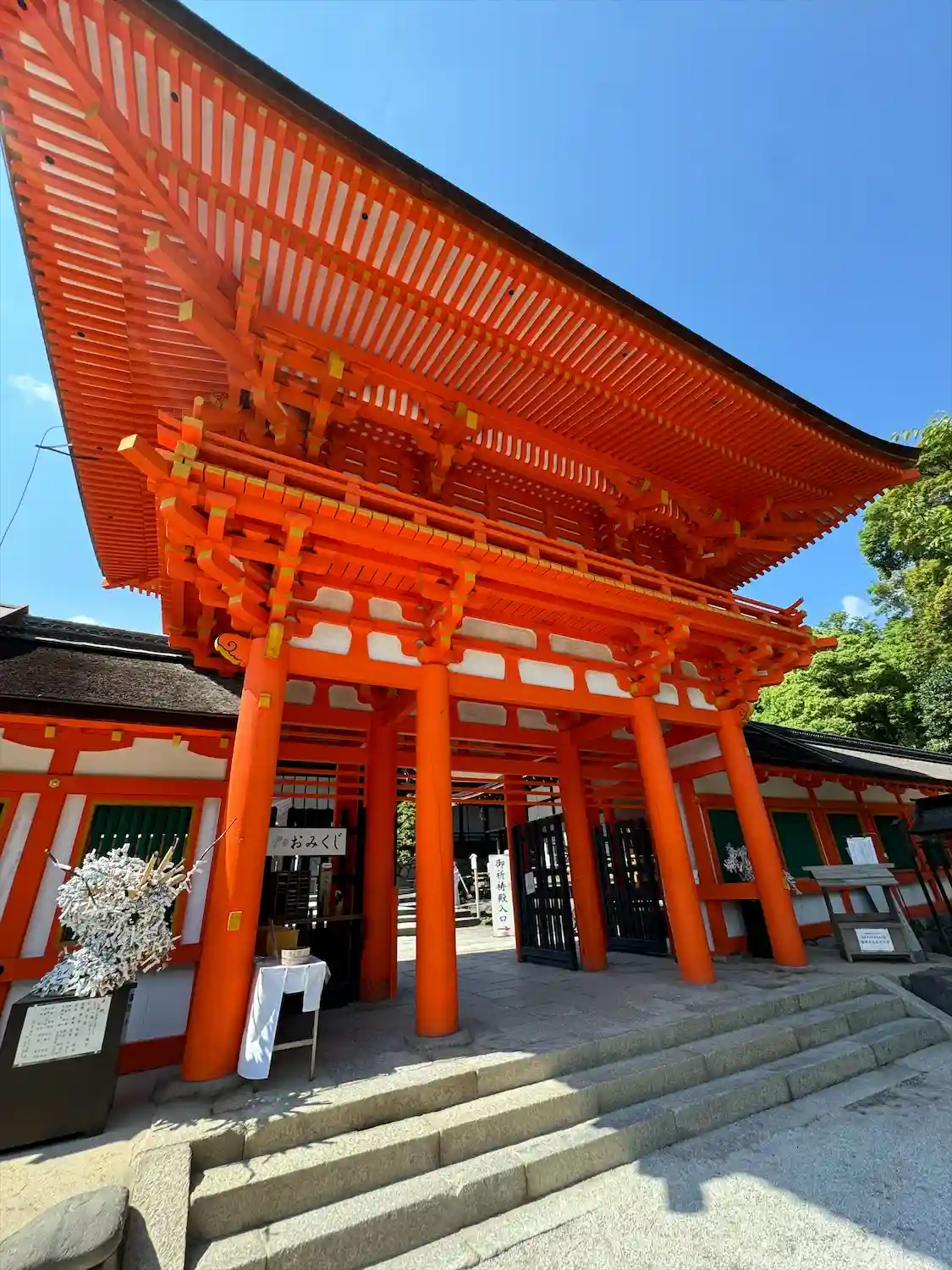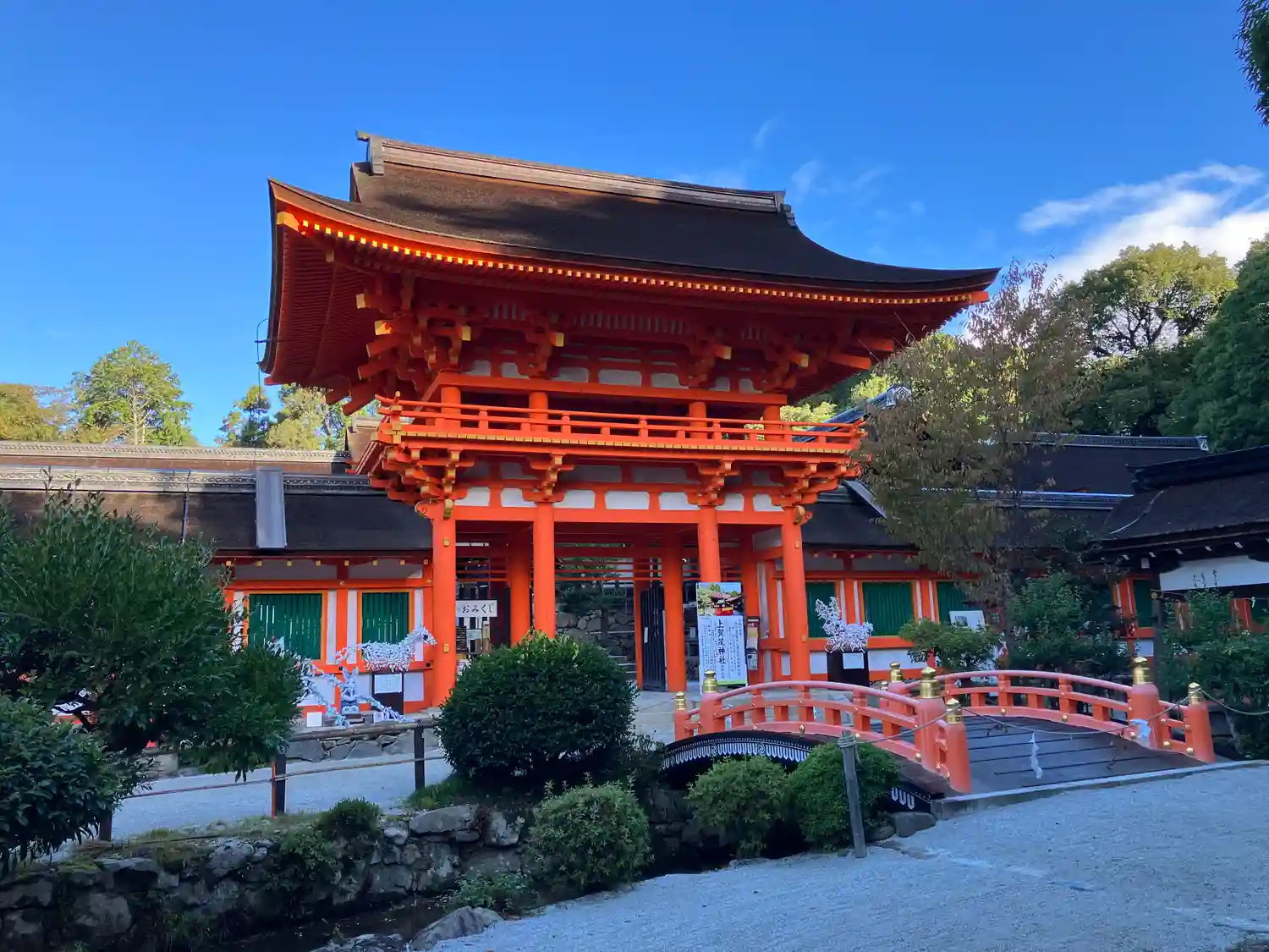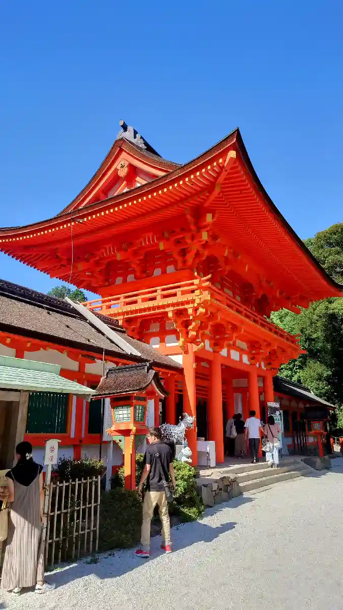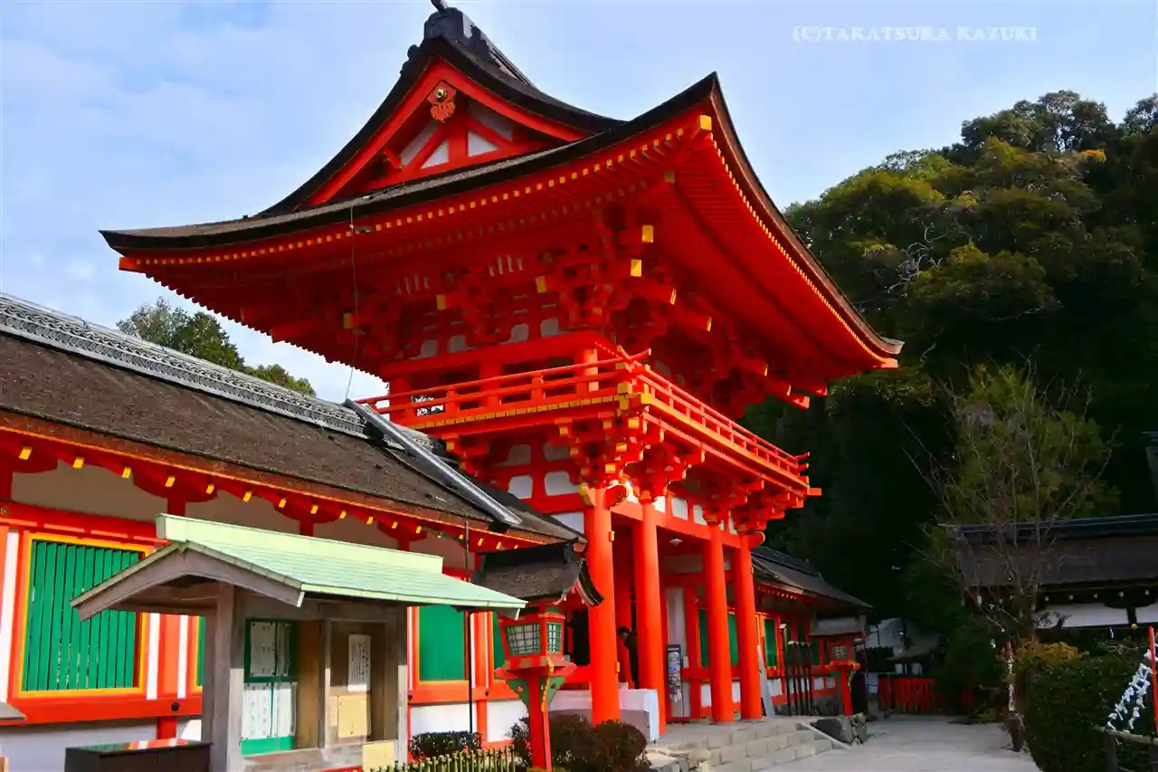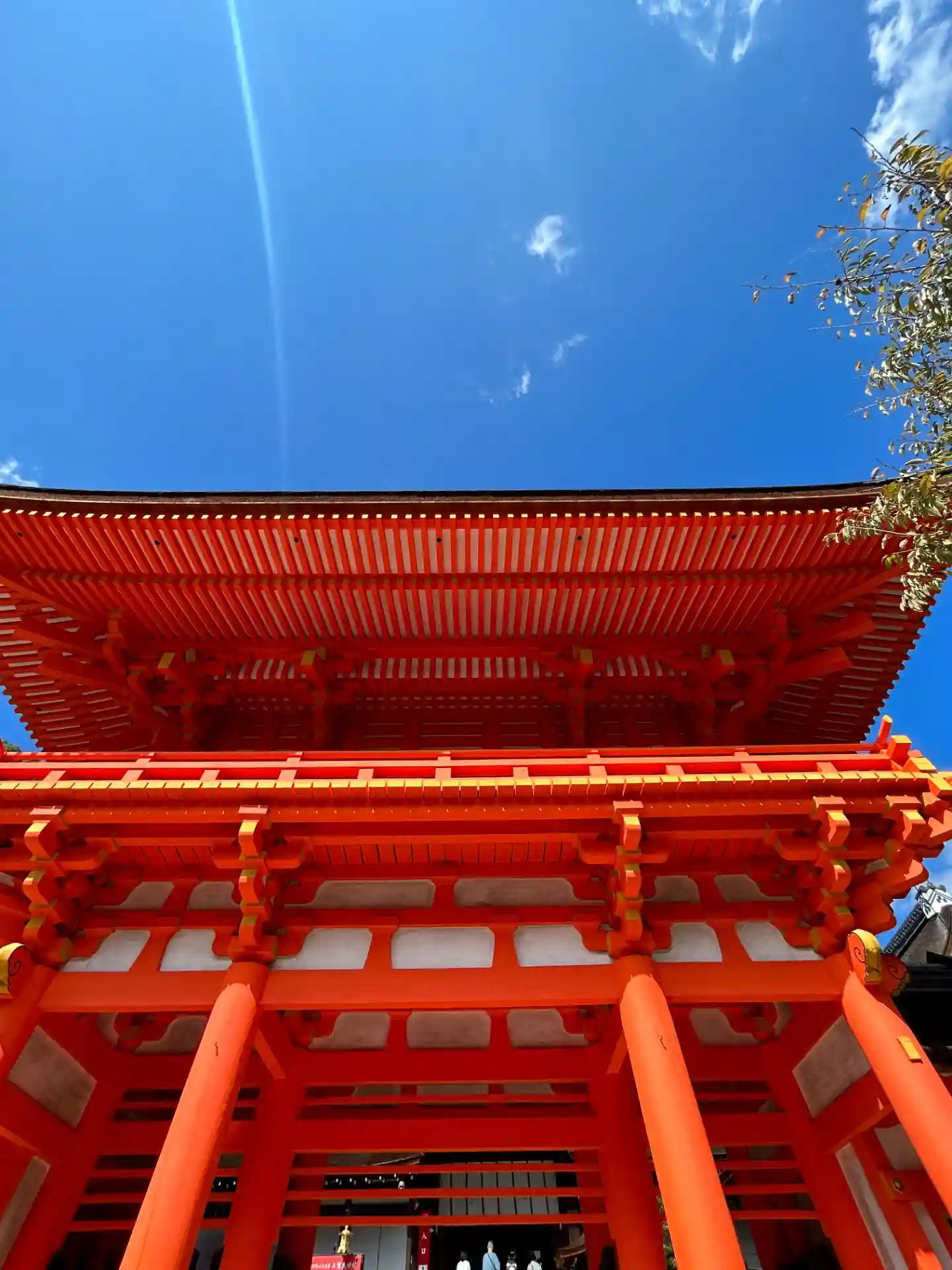 楼門の朱色が鮮やかです。