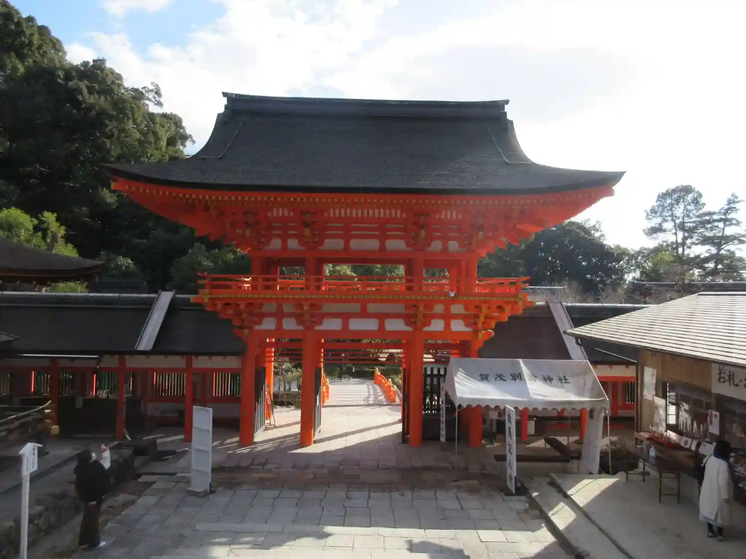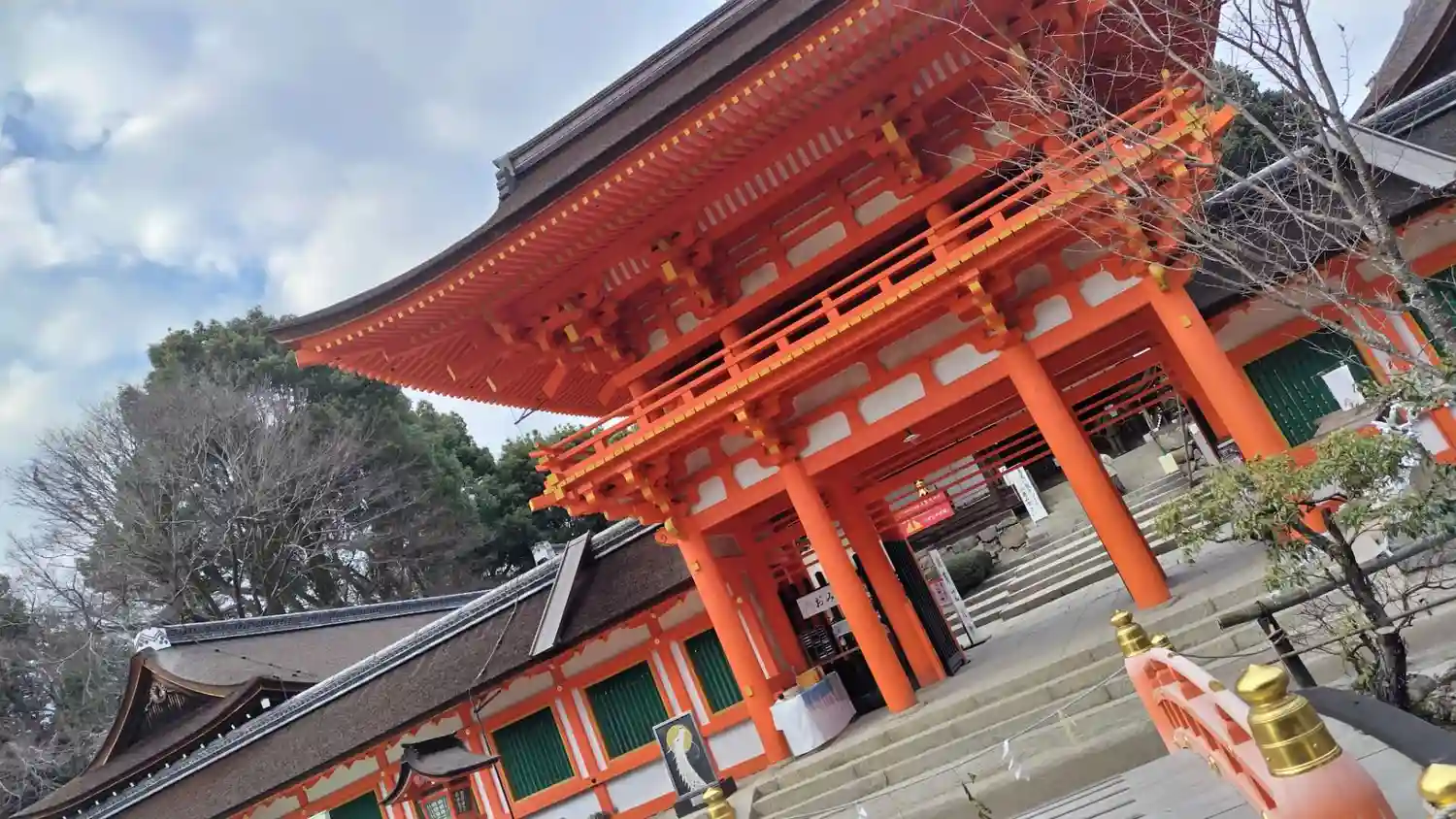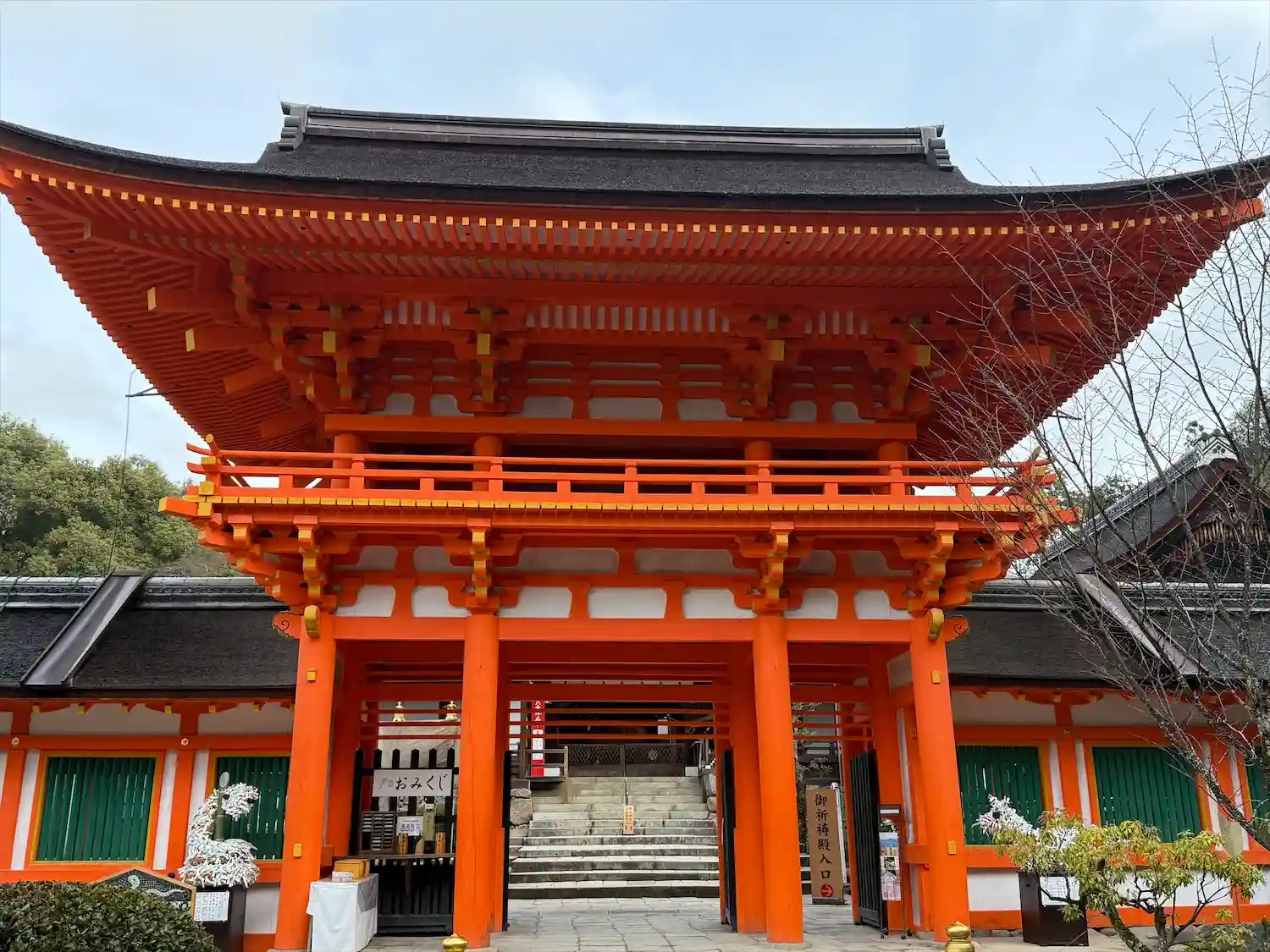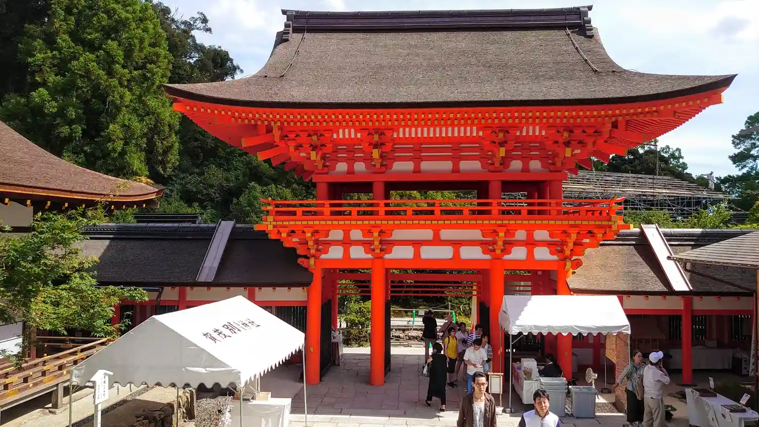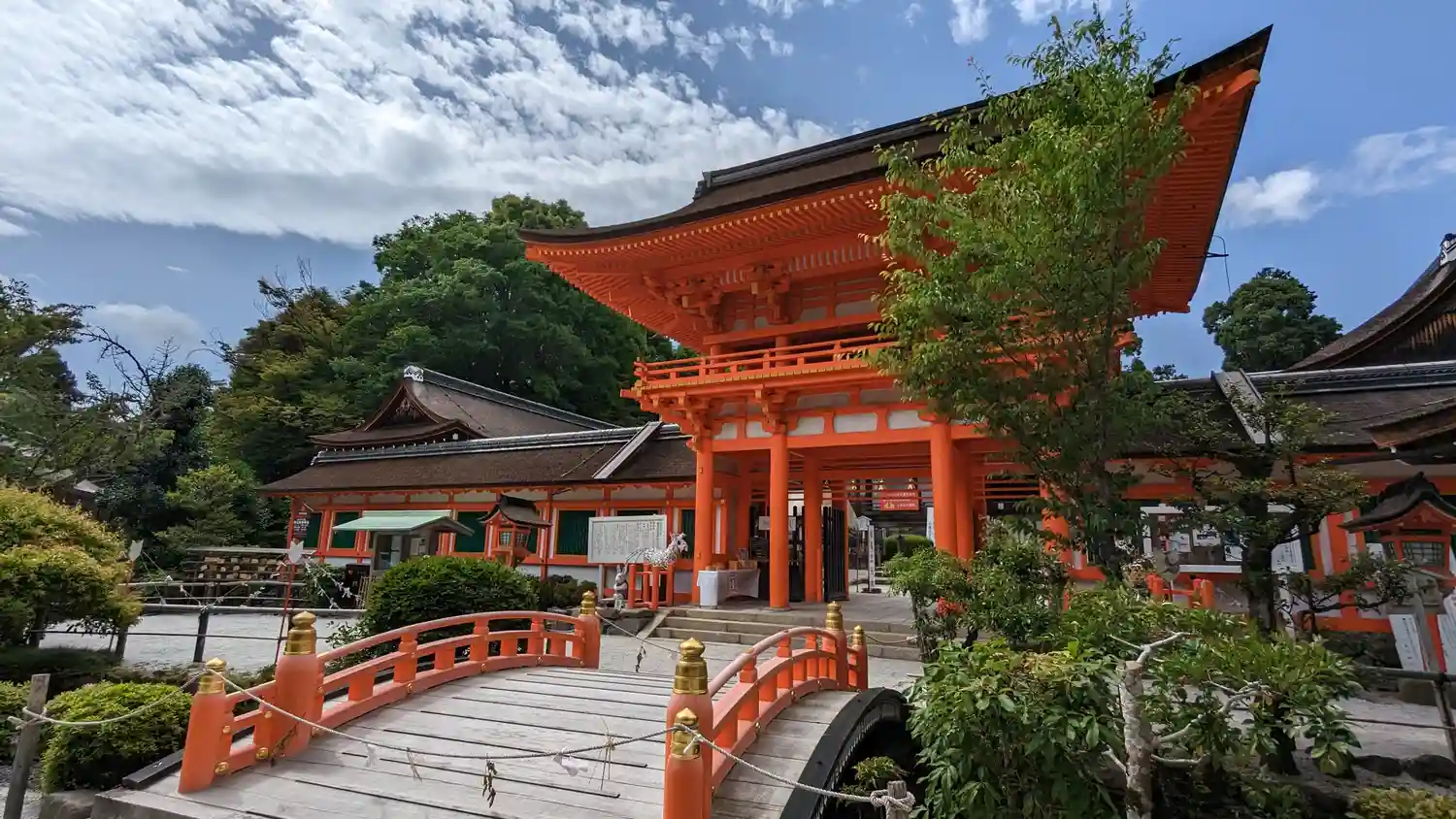 楼門の朱色が鮮やかです。