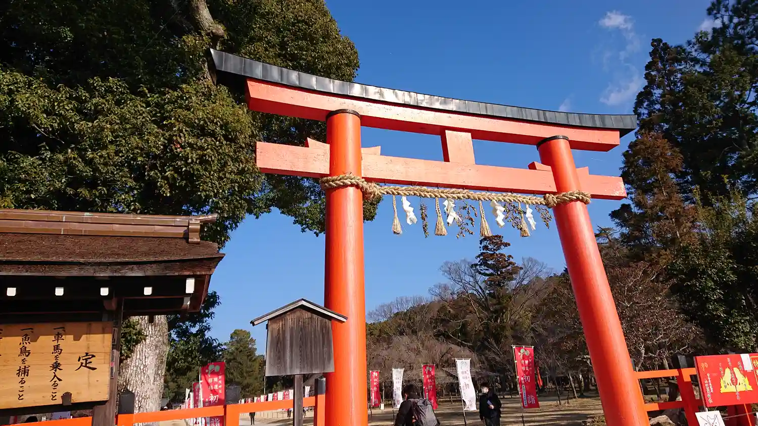 年末なので初詣ののぼりがすでに立てられていました