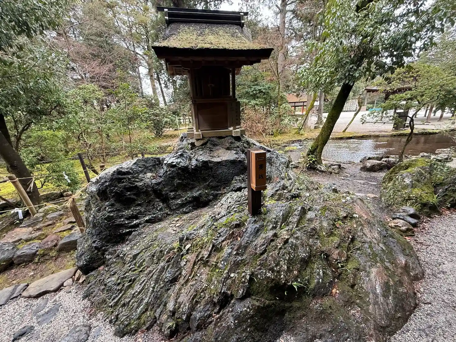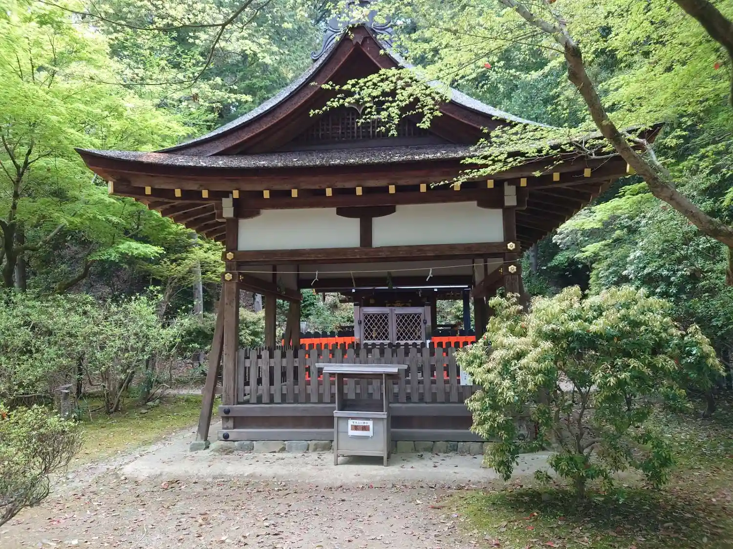 神代の昔、賀茂別雷大神が本殿の北北西にある神山(こうやま)に降臨したという。