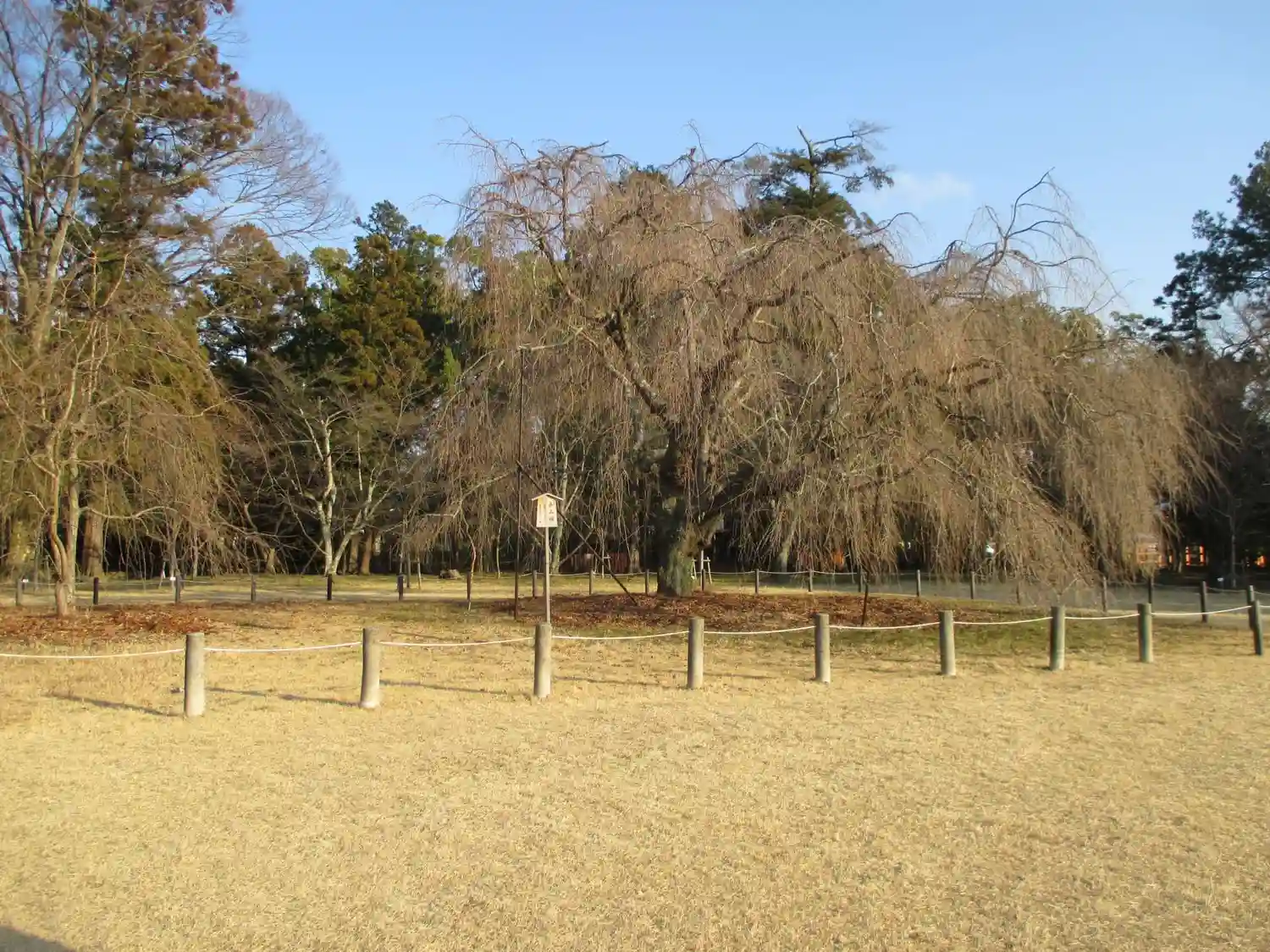 名物のしだれ桜はもうじき見頃。