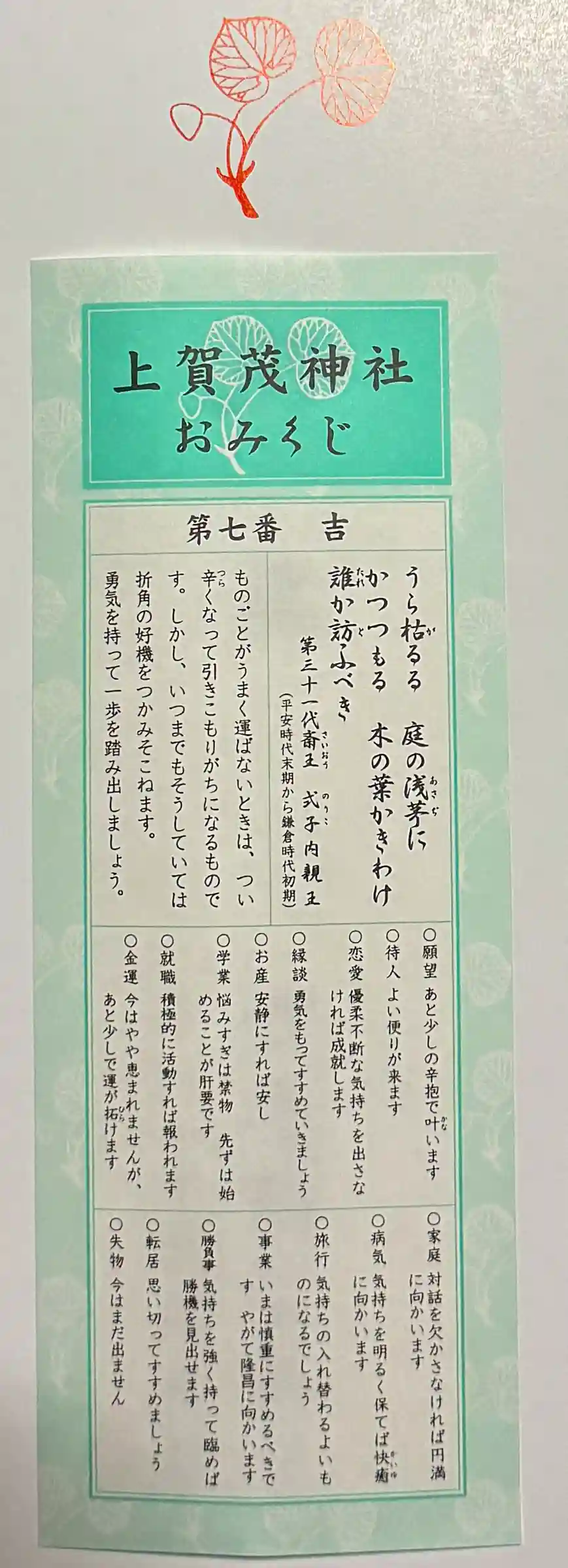 この他にも賀茂なす、勝馬と変わったおみくじがありました。それは次回のお楽しみにします。