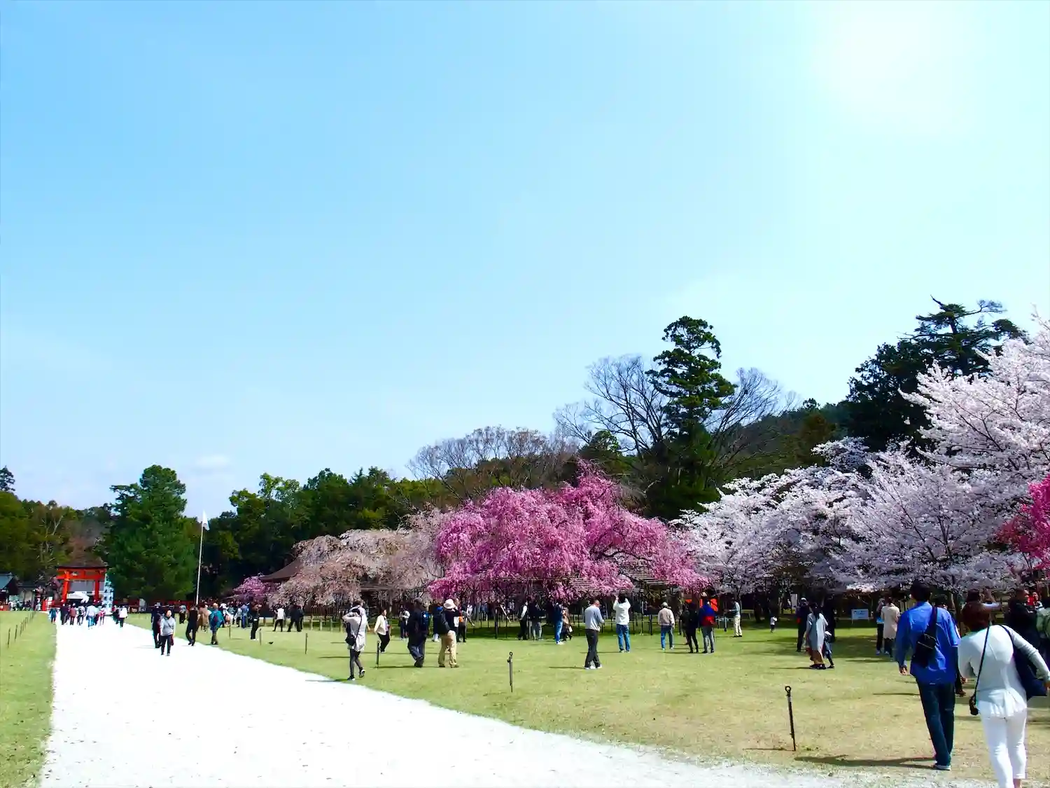 上賀茂神社。ここは遅咲きの桜スポット。