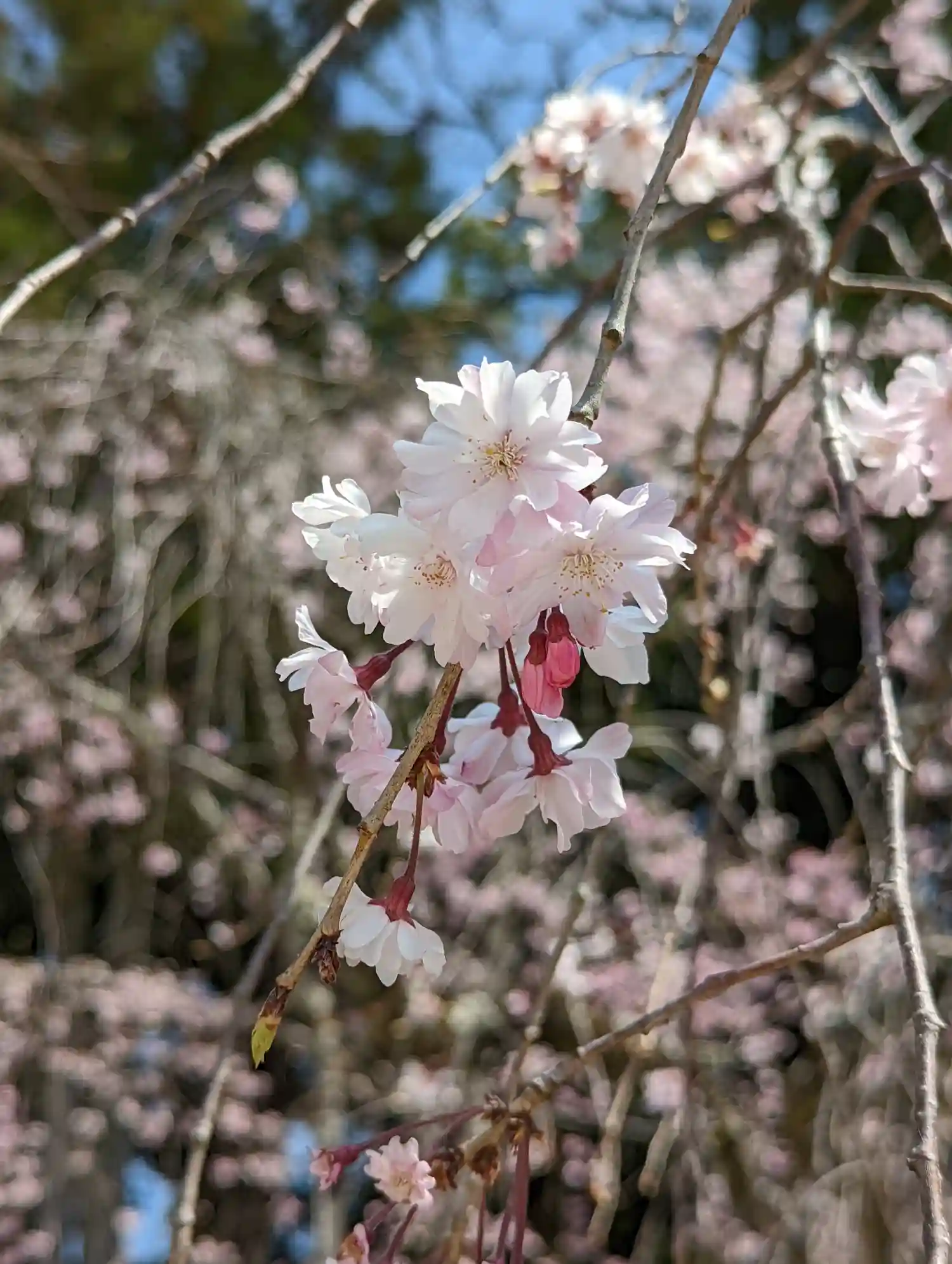 お気に入りの源平シダレモモが出されるんですよ。これが見られるのもこの時期の楽しみ。