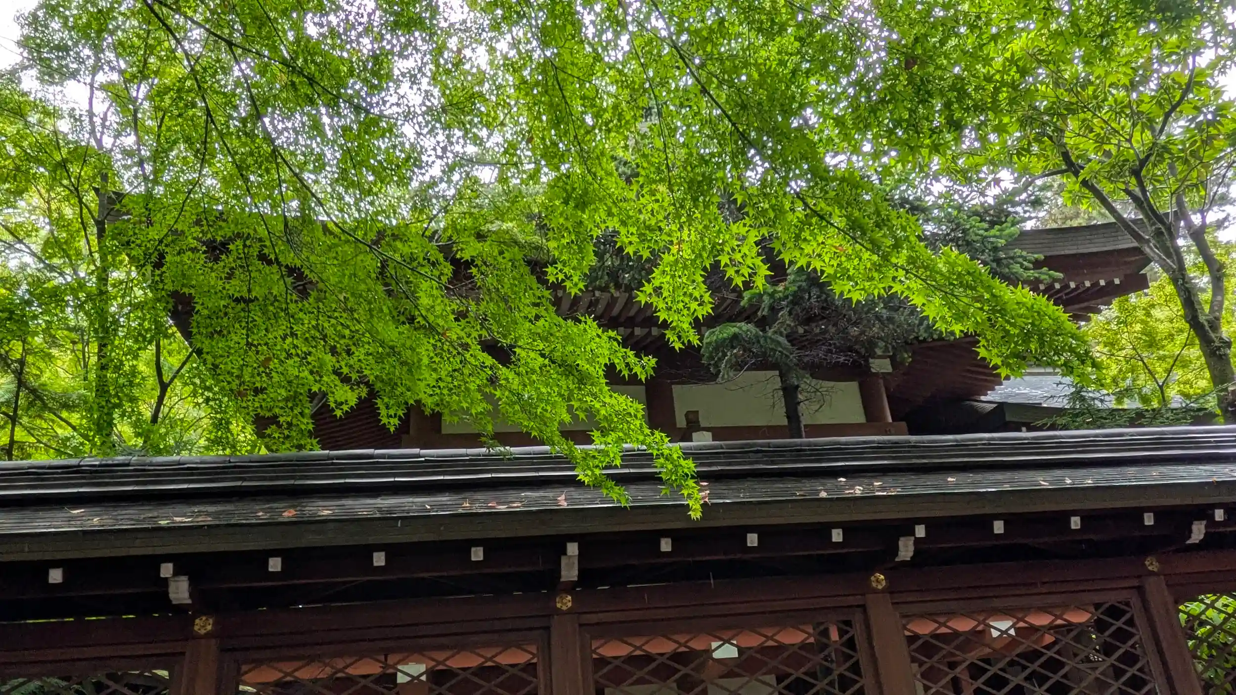 本殿。青モミジが良き🤗
