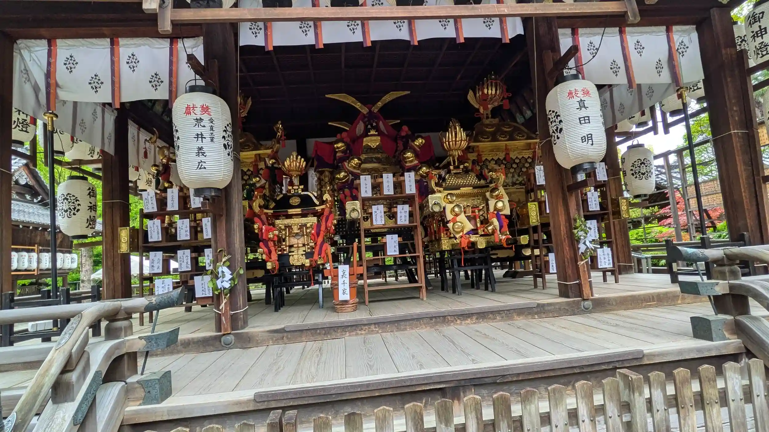本殿側からだと子供用神輿2基も確認でき、計5基