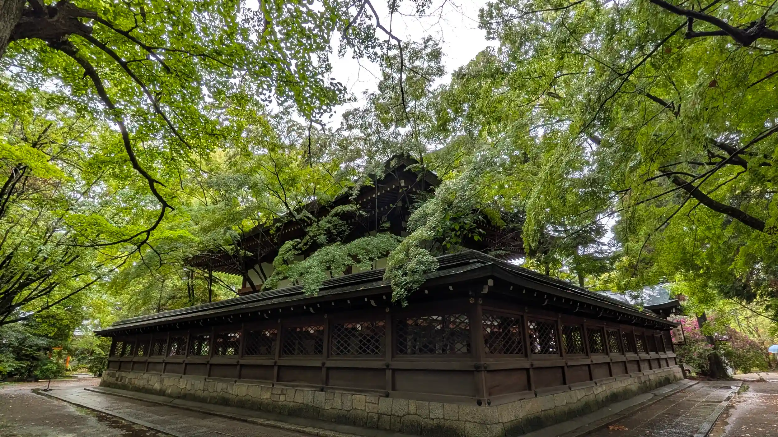 あいにくの雨模様なのでバスで北山まで行き、いつもの法乗院さんに御朱印帳をお預けして南下開始。まずは上御霊さんへ。西鳥居から入り昨年修復終えた随身門から境内へ。境内はほぼ緑ですがところどころに躑躅が咲いており、そして境内南側には一初の花が結構いっぱい咲いてました🤗上御霊が一初の名所って知らんかったぁ😅これもお導きかな?祭り期間のため神楽殿には金ぴかの神輿がずらりと並んでました🤗18日の還幸祭は日曜だから来れなくもないなぁ・・・天気次第で考えよう😅境内西と南側はわりと散策してましたが北側に末社がこんなに並んでるのも気づきませんでした😲長宮三十社というらしくその名の通り末社が30柱並んでいます😲なかなかすごいうえに有名どころばっかりです。三社ずつでも十回お詣り😅なかなか大変です。神明神社、福寿稲荷と周り、最後に本殿をお詣り。南側から退出したら塀際の堀に一初が群生😍今週頭なら見頃だったのかも。でも十分にきれいでした🤗近くで見れるぶん太田神社の燕子花より良いかも(無料やし😅)