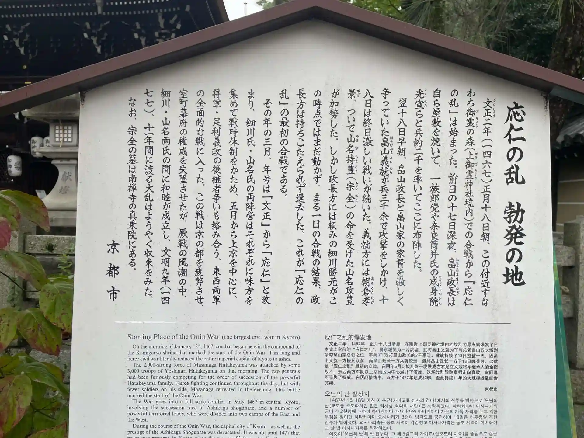 またこの地は 応仁の乱勃発の地として知られています。