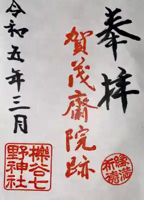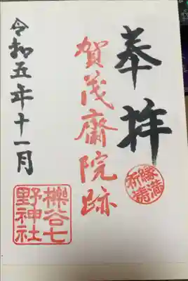 櫟谷七野神社周辺の御朱印