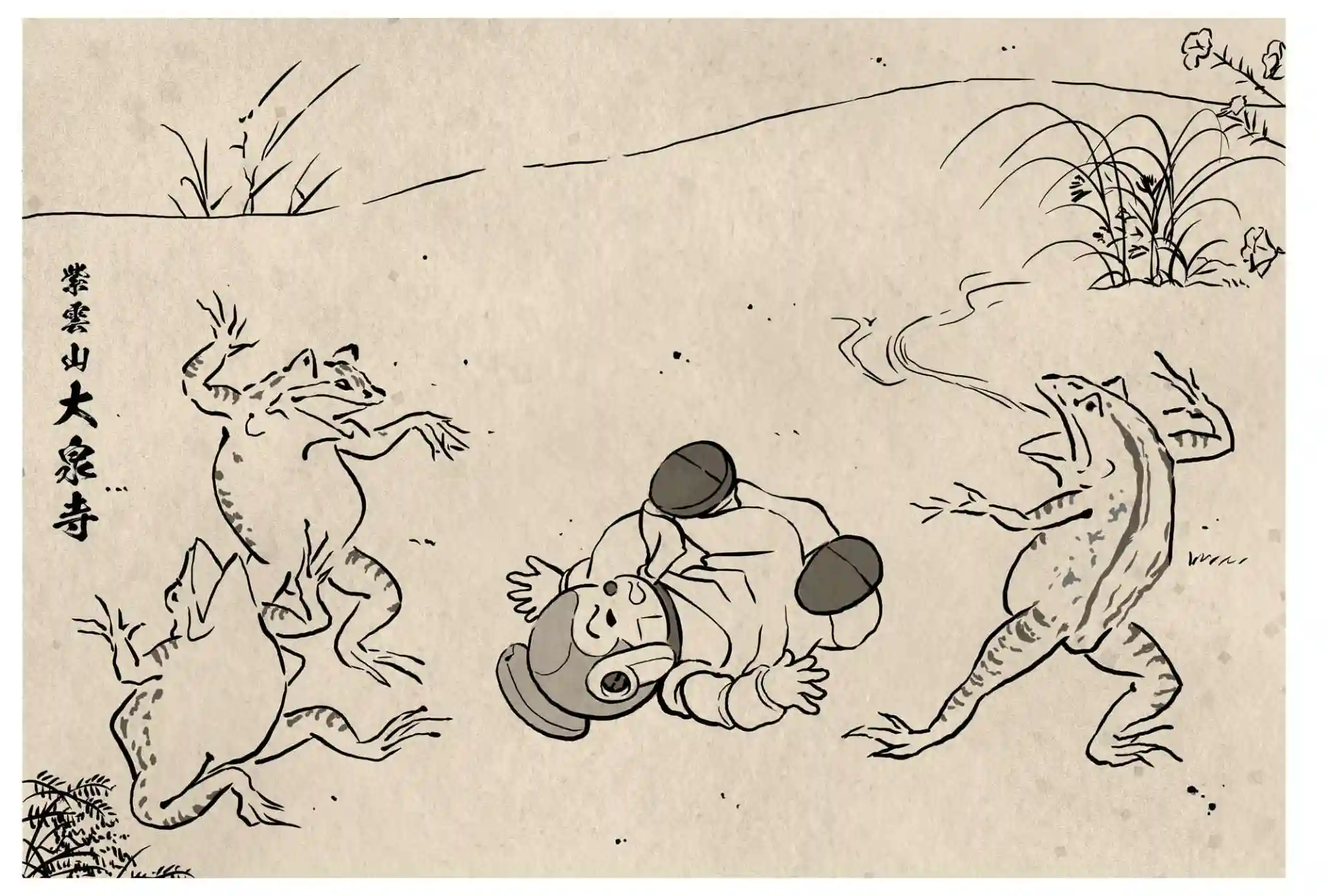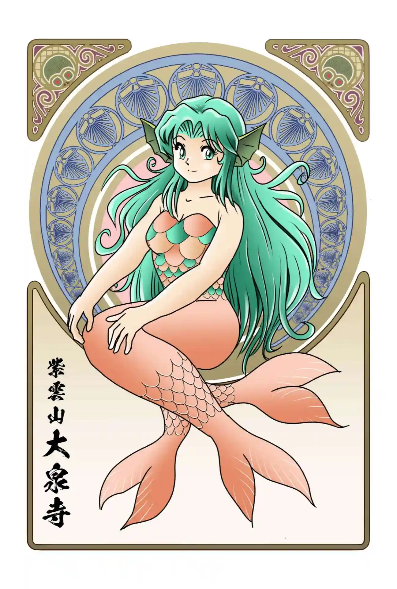 鳥獣戯画とミュシャをイメージした語朱印一周年のポストカード二種ですが、