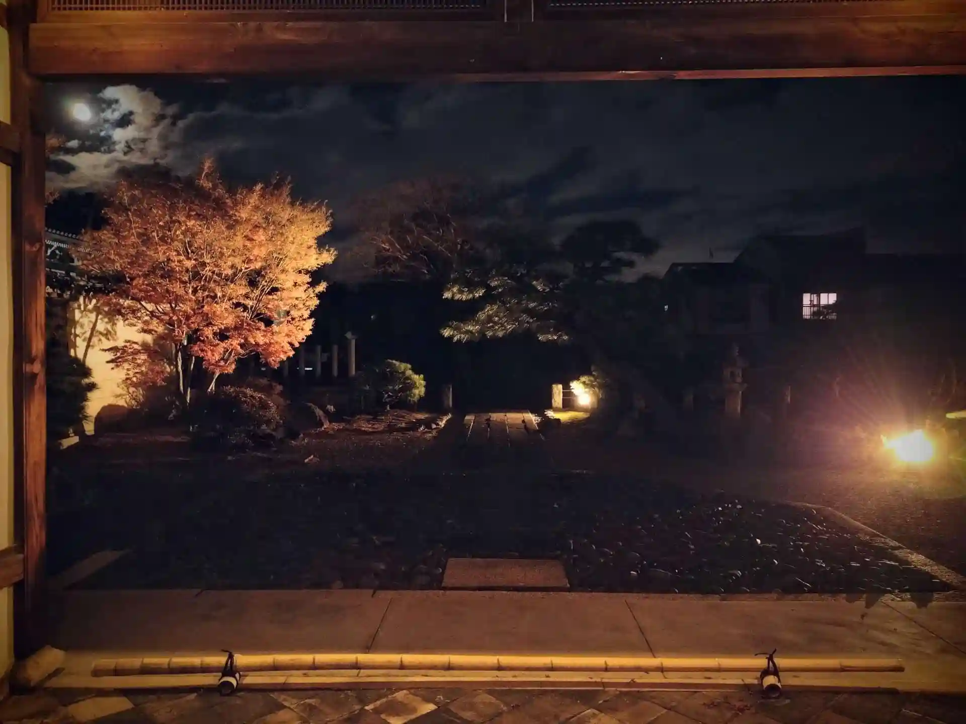 散りもみじでしたが、ちょうど満月も昇って幻想的でした。