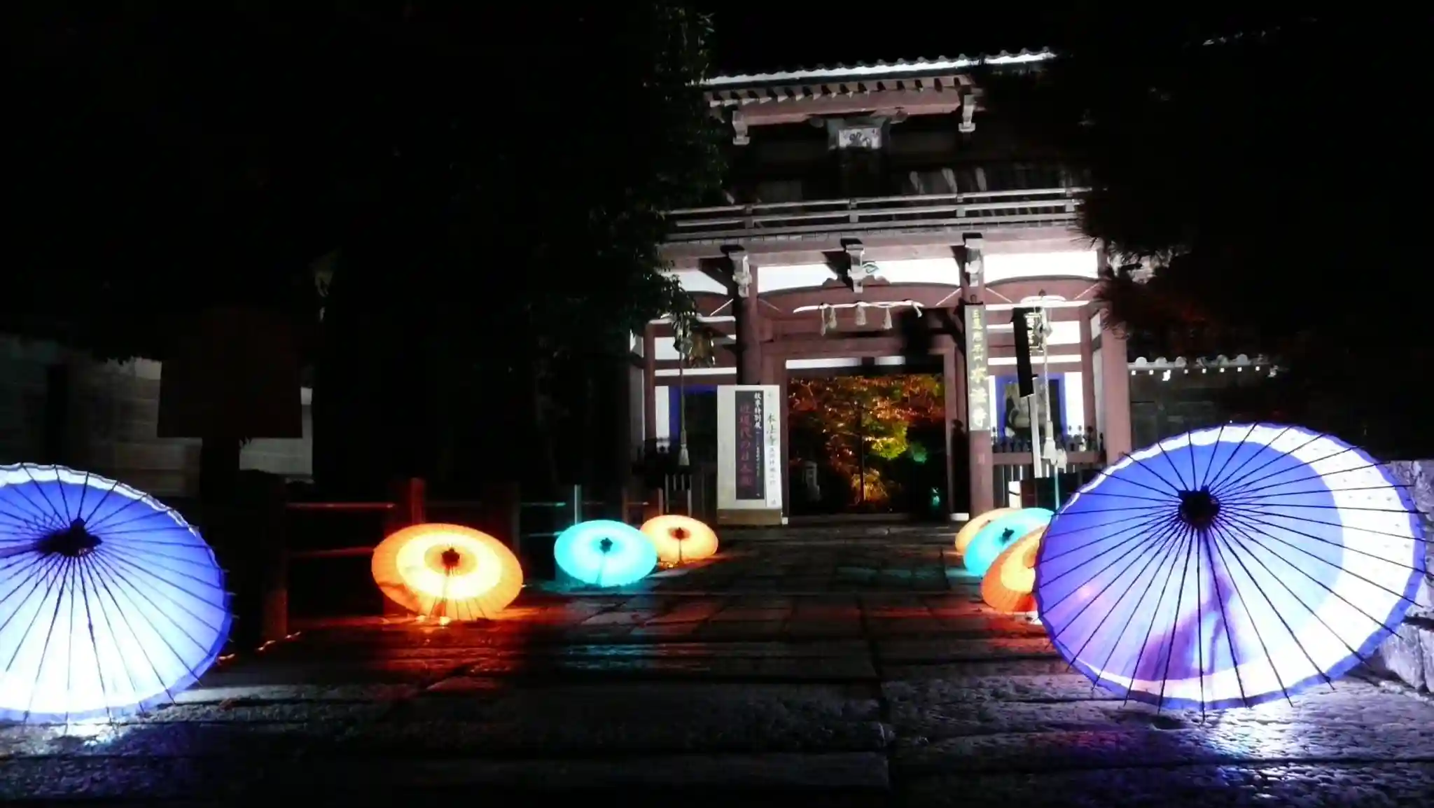 小川通から入る楼門。この時は特別拝観ライトアップ。